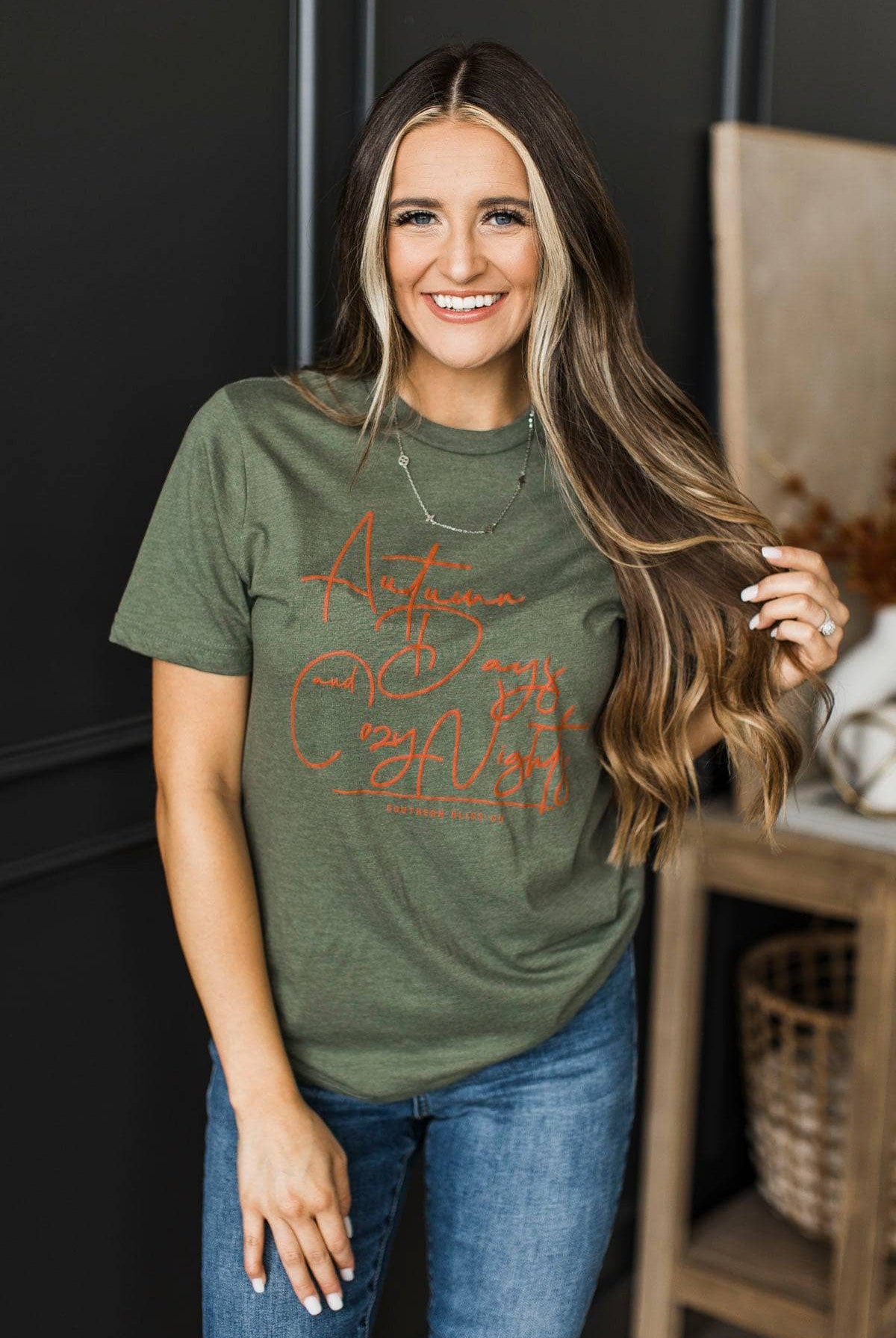 "Autumn Days and Cozy Nights" Graphic Tee- Dark Sage