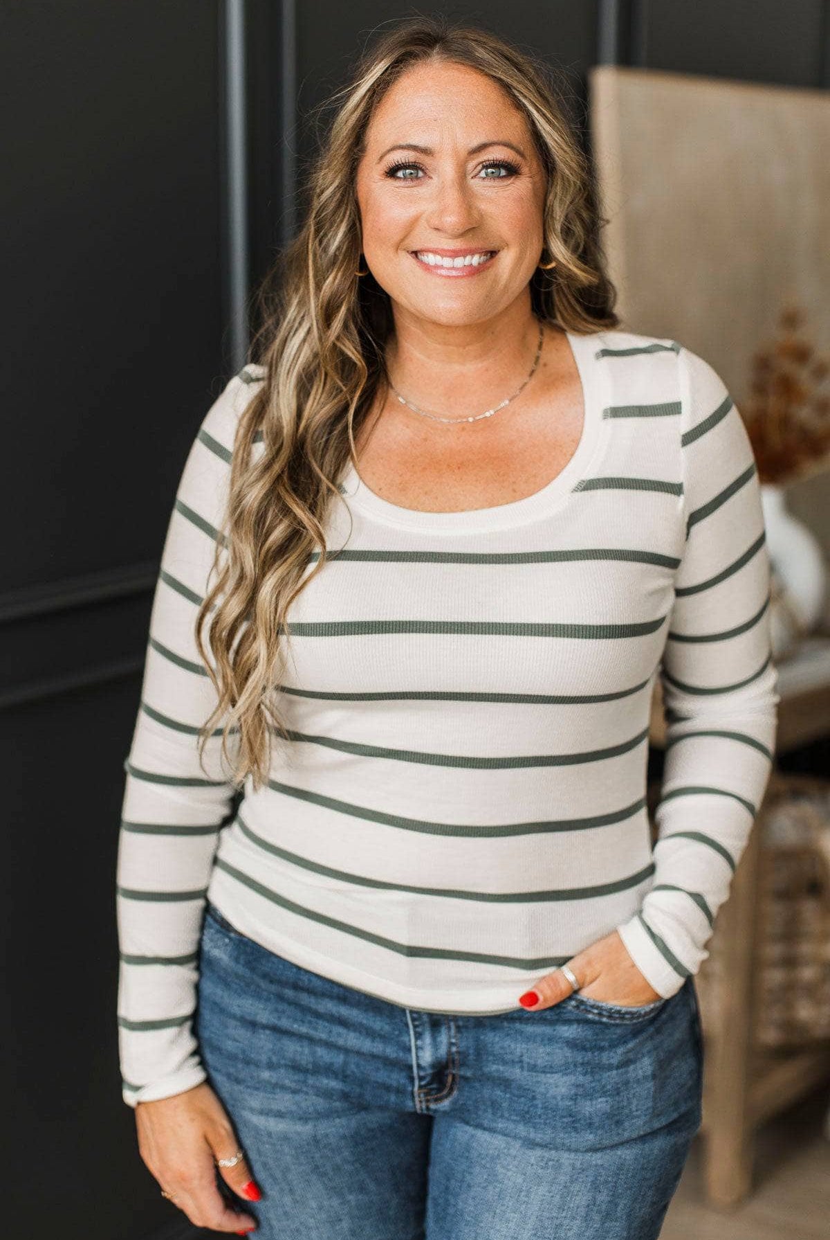 All In Balance Long Sleeve Striped Top- Ivory & Spruce