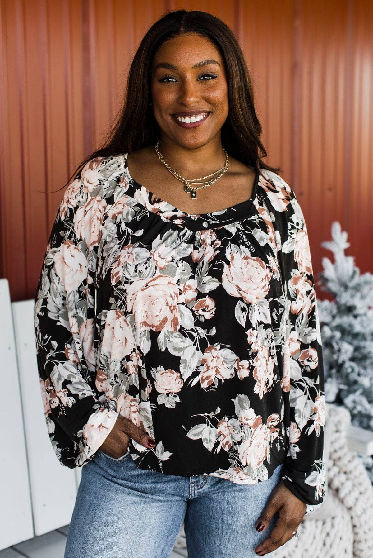 Overflowing Happiness Ruched Floral Top- Black
