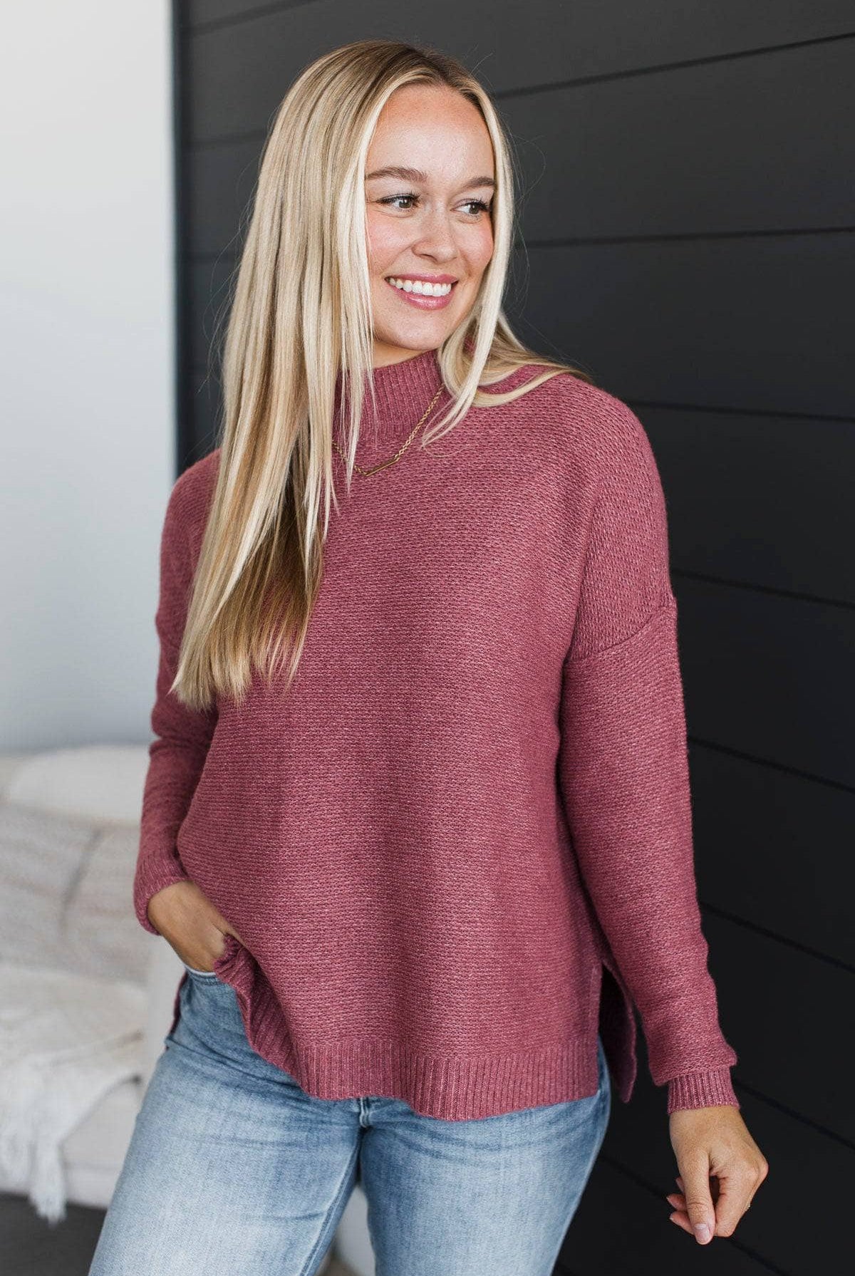 Telling My Story Mock Neck Sweater- Dark Rose