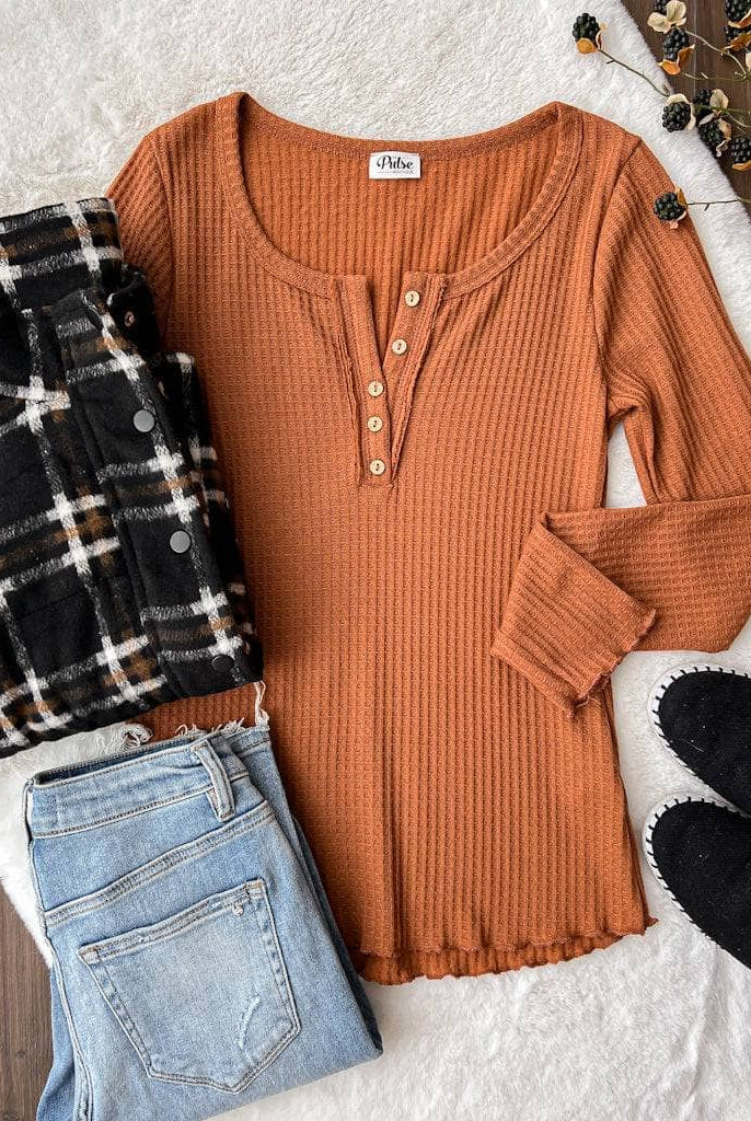 Hard To Impress Long Sleeve Henley Top- Ivory & Caramel