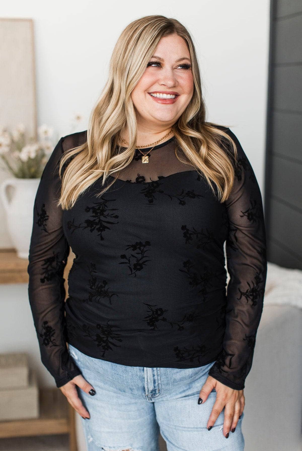 Find Your Light Floral Puff Sleeve Top- Black