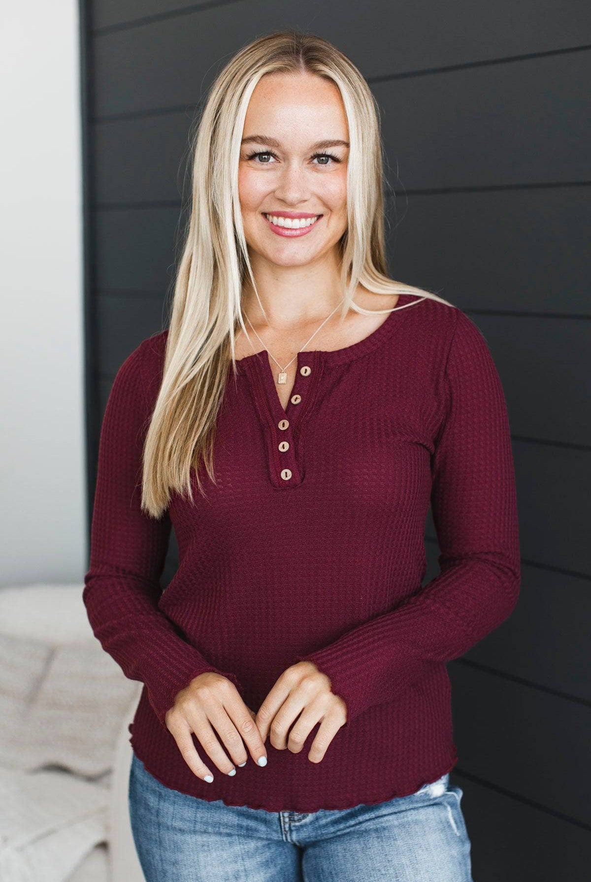 Greatness Awaits Waffle Knit Top- Burgundy