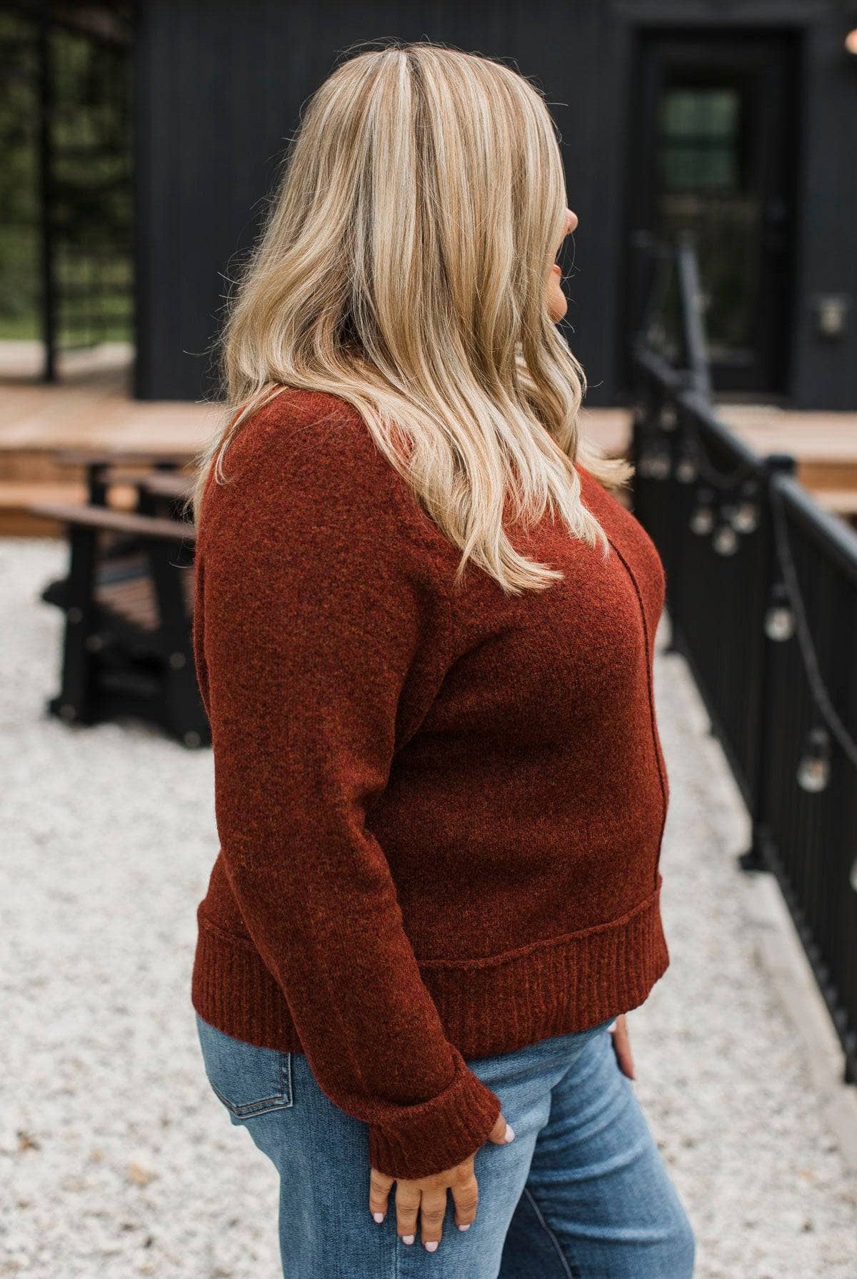 Creating My Happiness Knit Sweater- Dark Rust