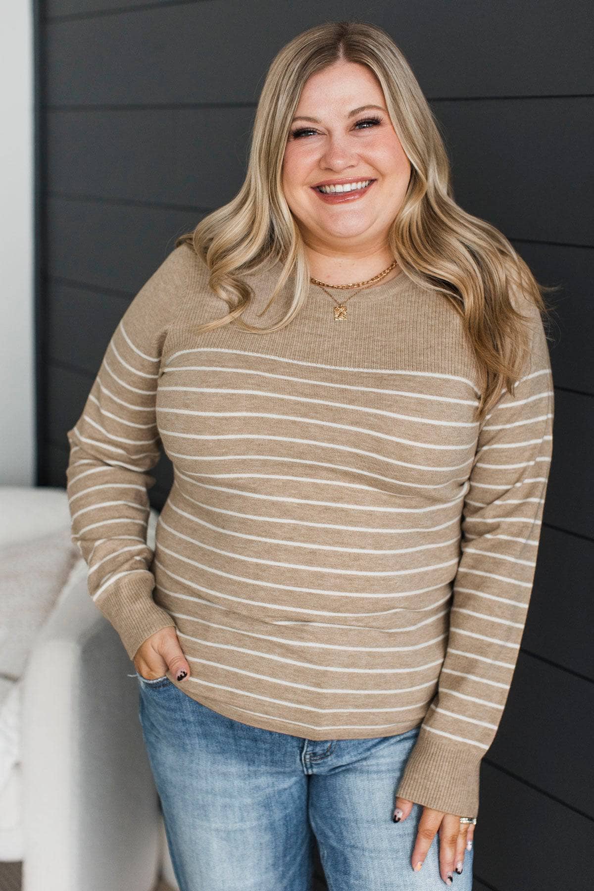 Awe Inspiring Striped Knit Sweater- Taupe