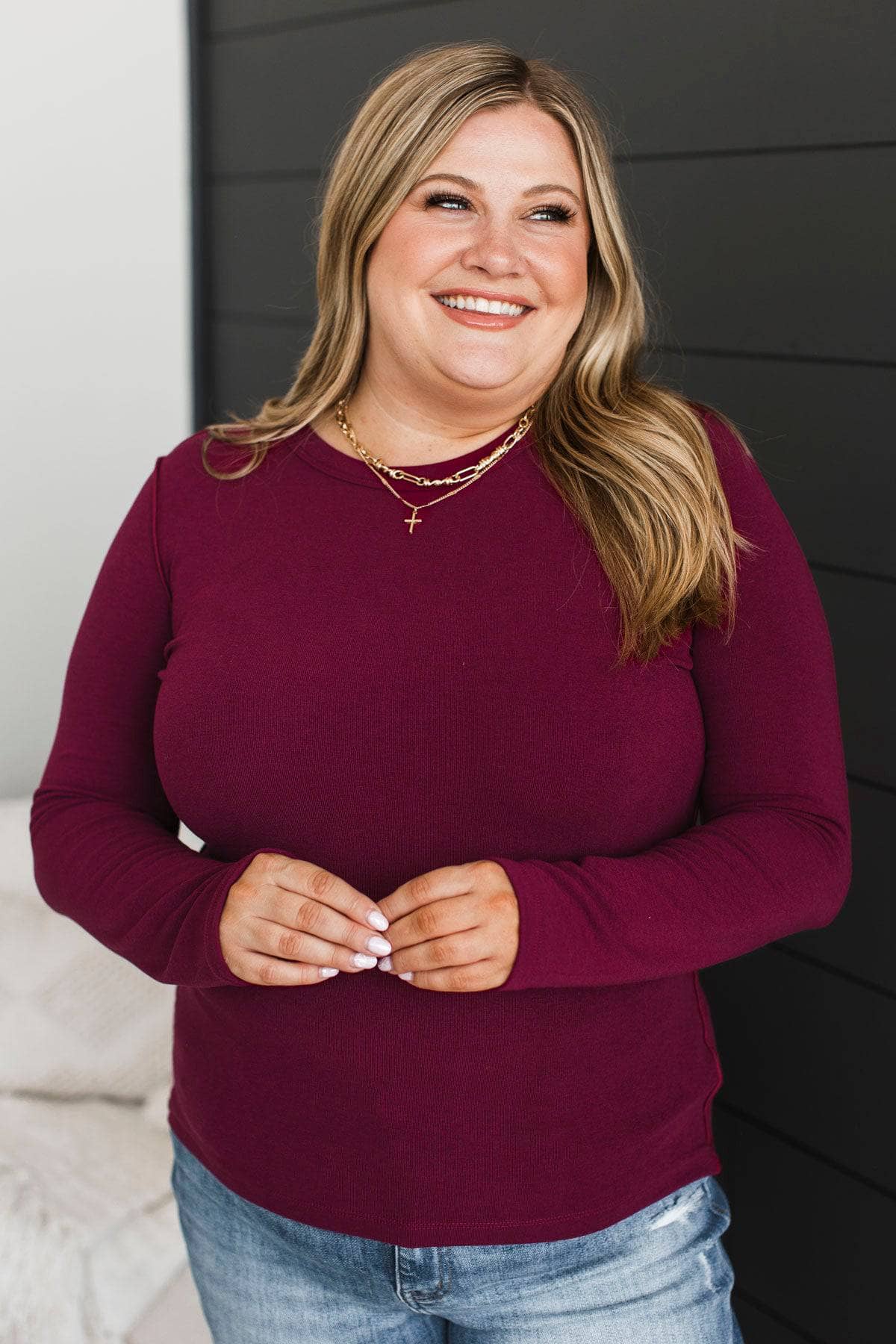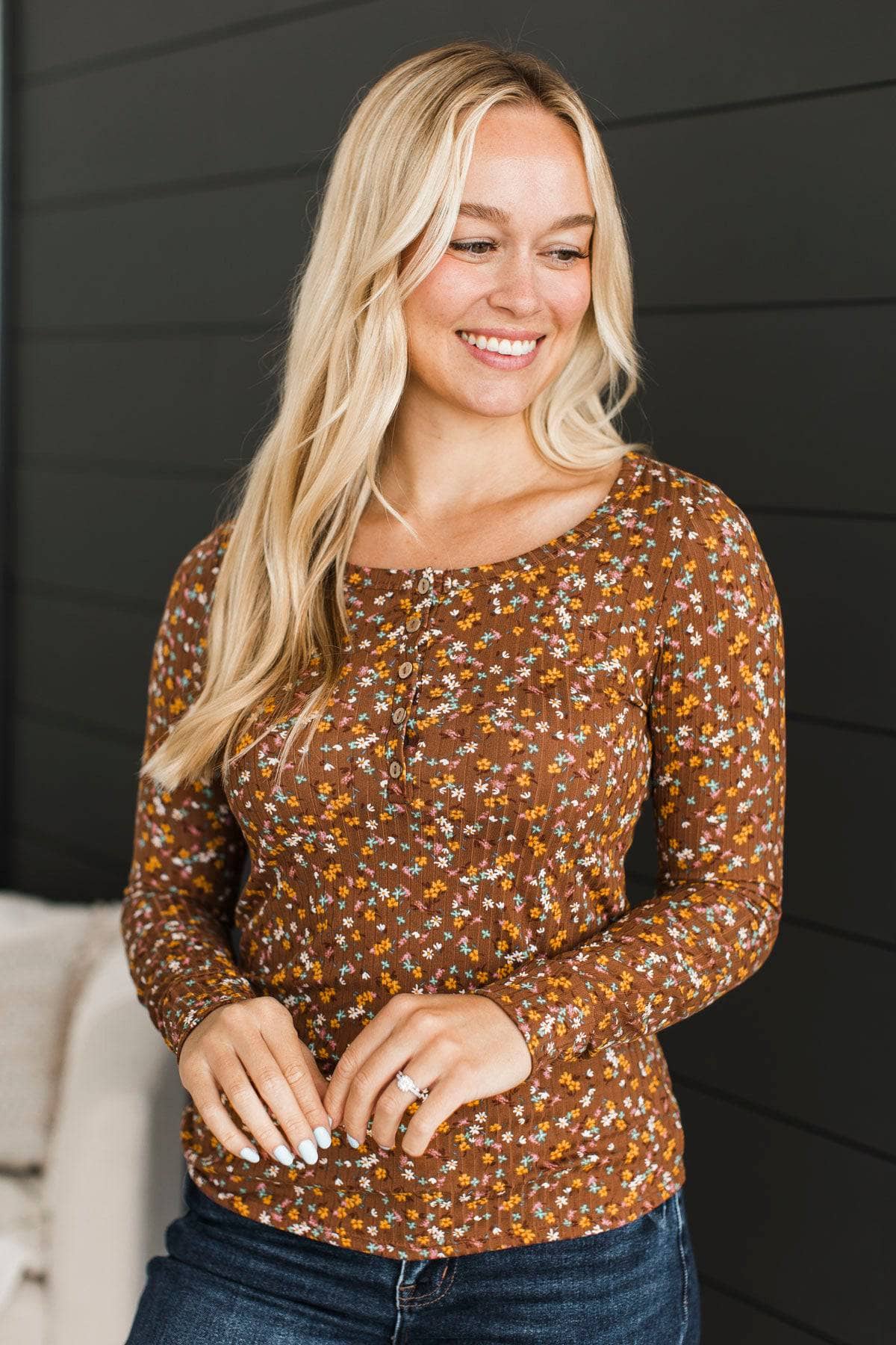 Pretty Darling Ribbed Long Sleeve Top- Brown