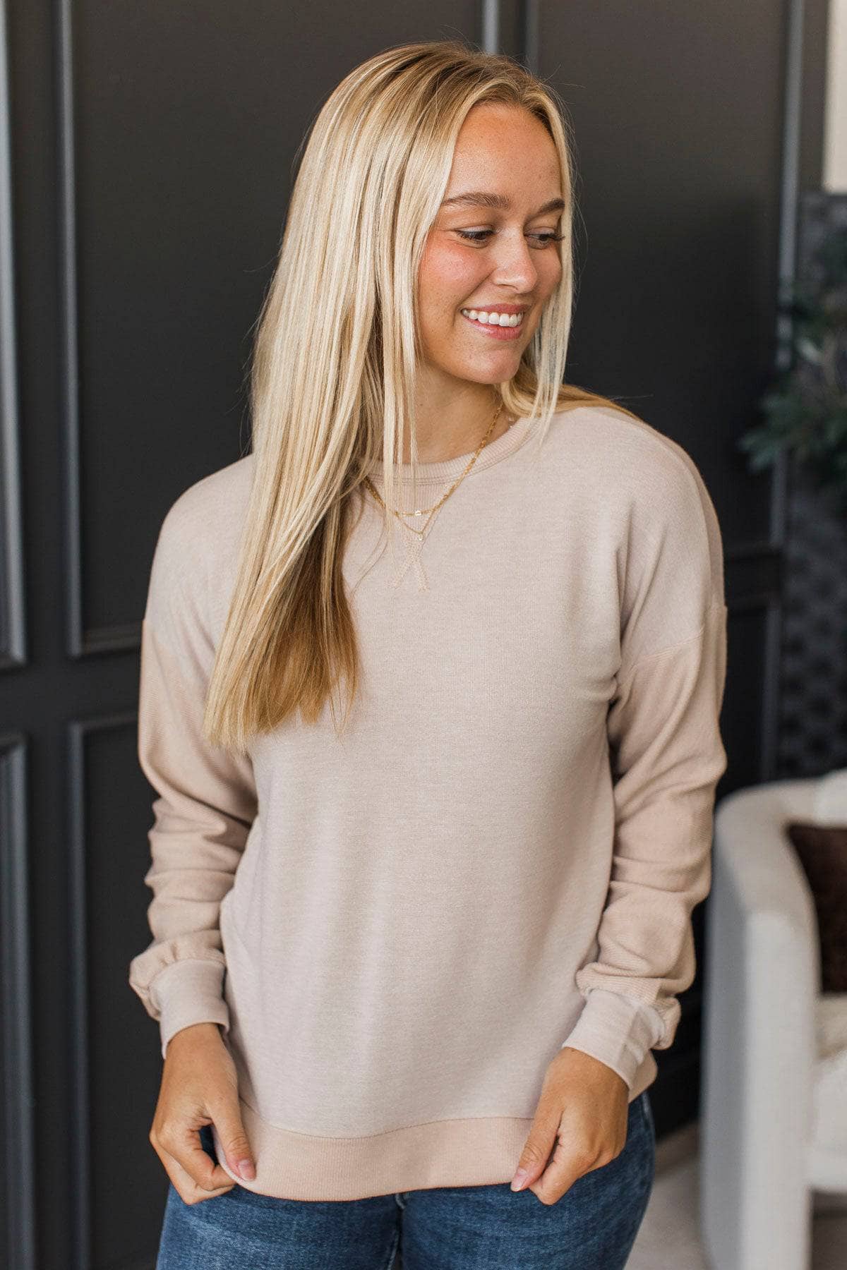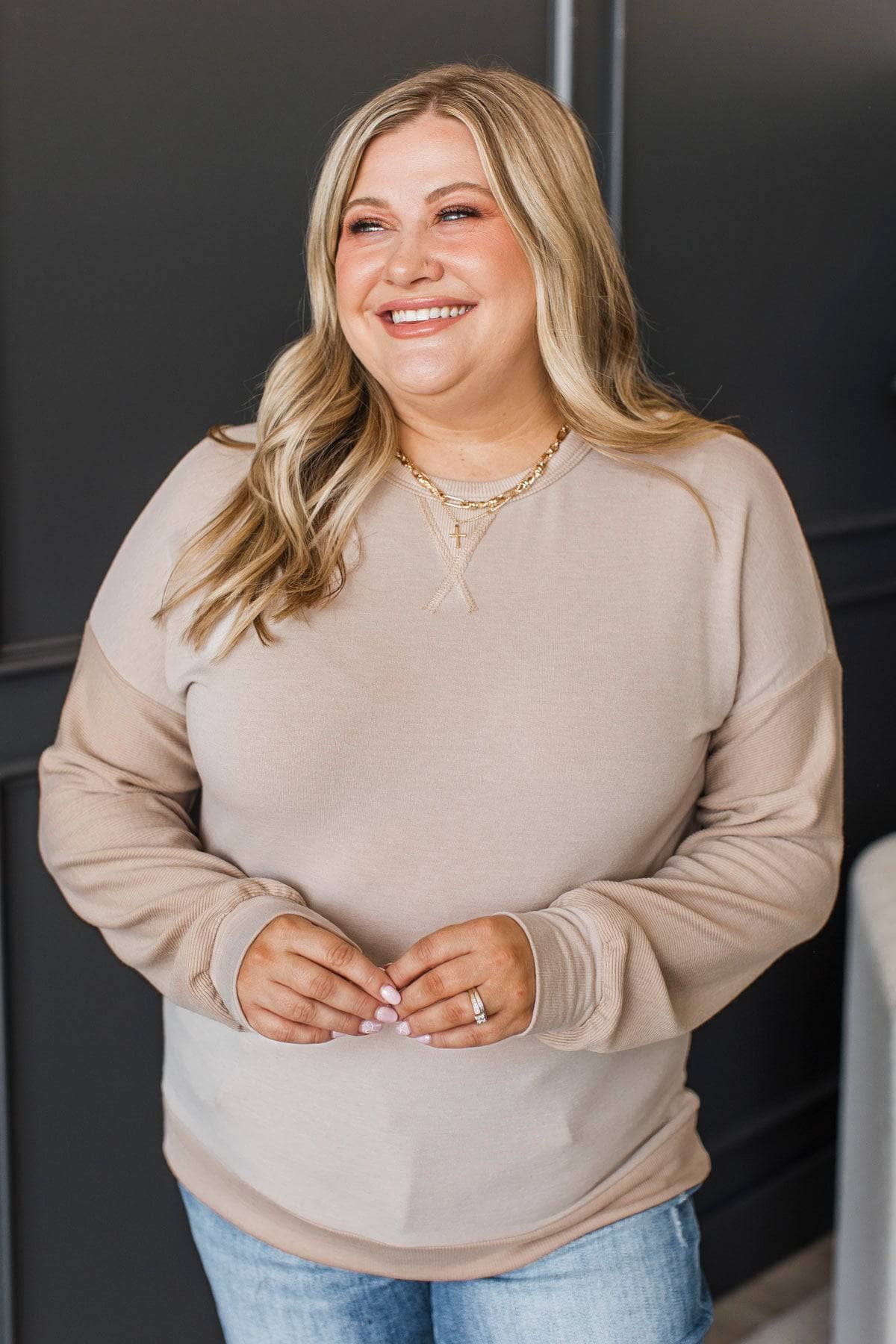 Fuel Your Passion Fabric Block Pullover Top- Natural