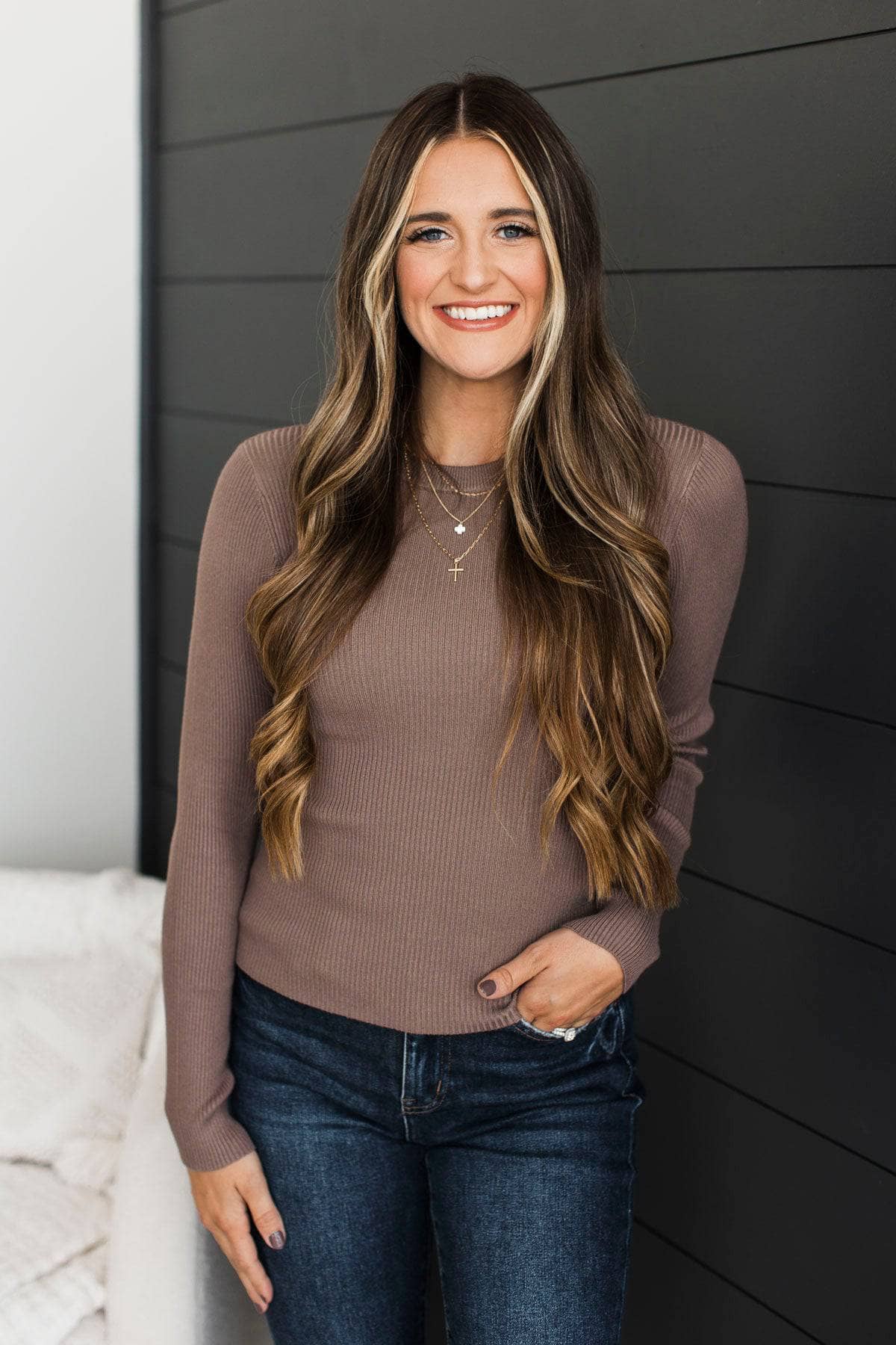 Exquisite As Always Long Sleeve Knit Top- Mocha