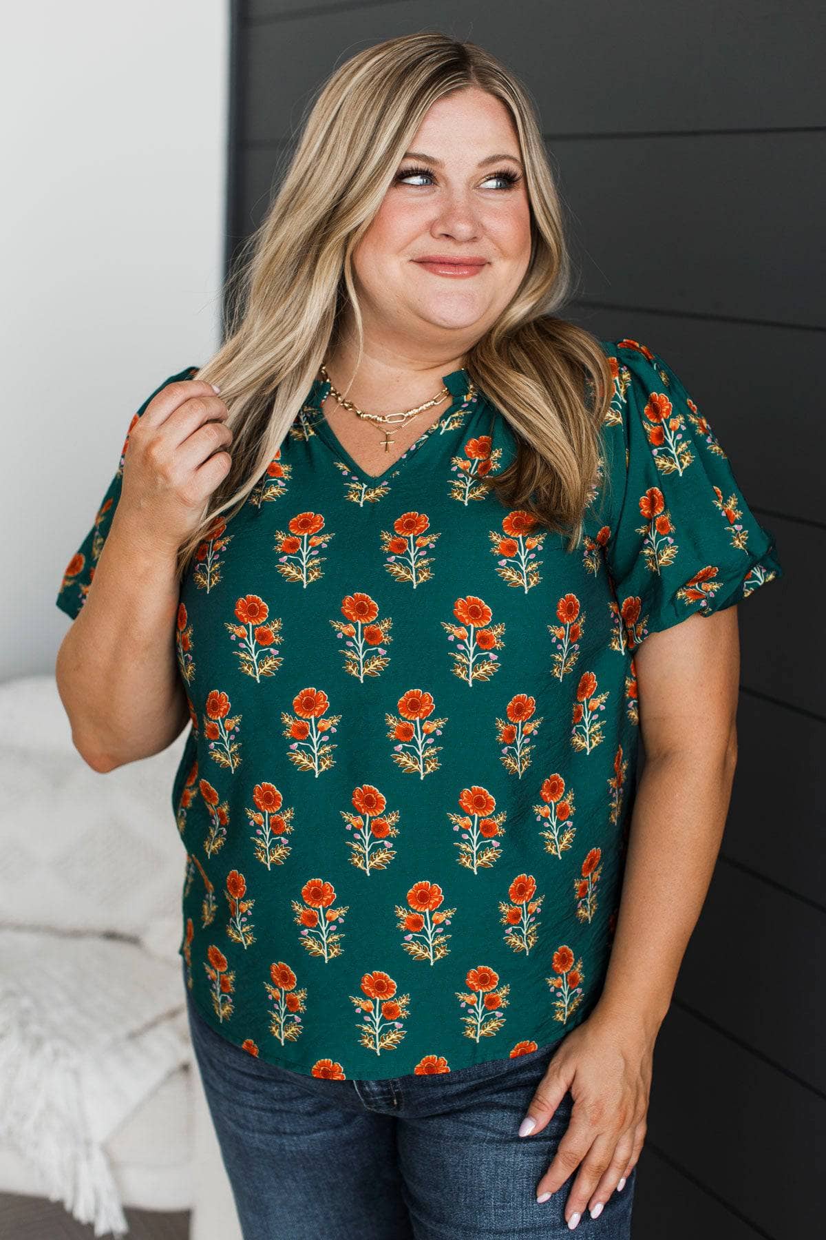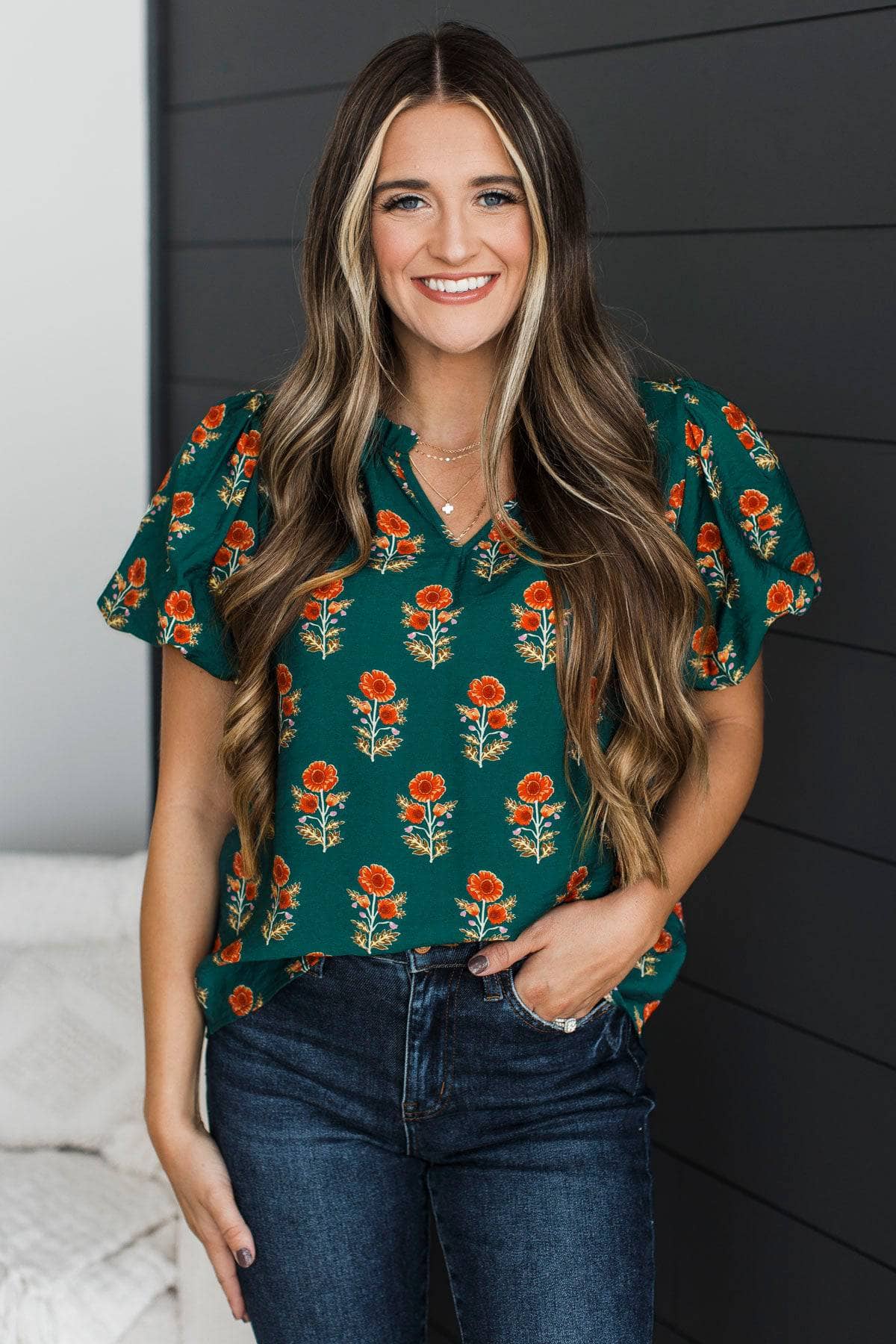 Once Upon A Daydream Floral Blouse- Dark Jade