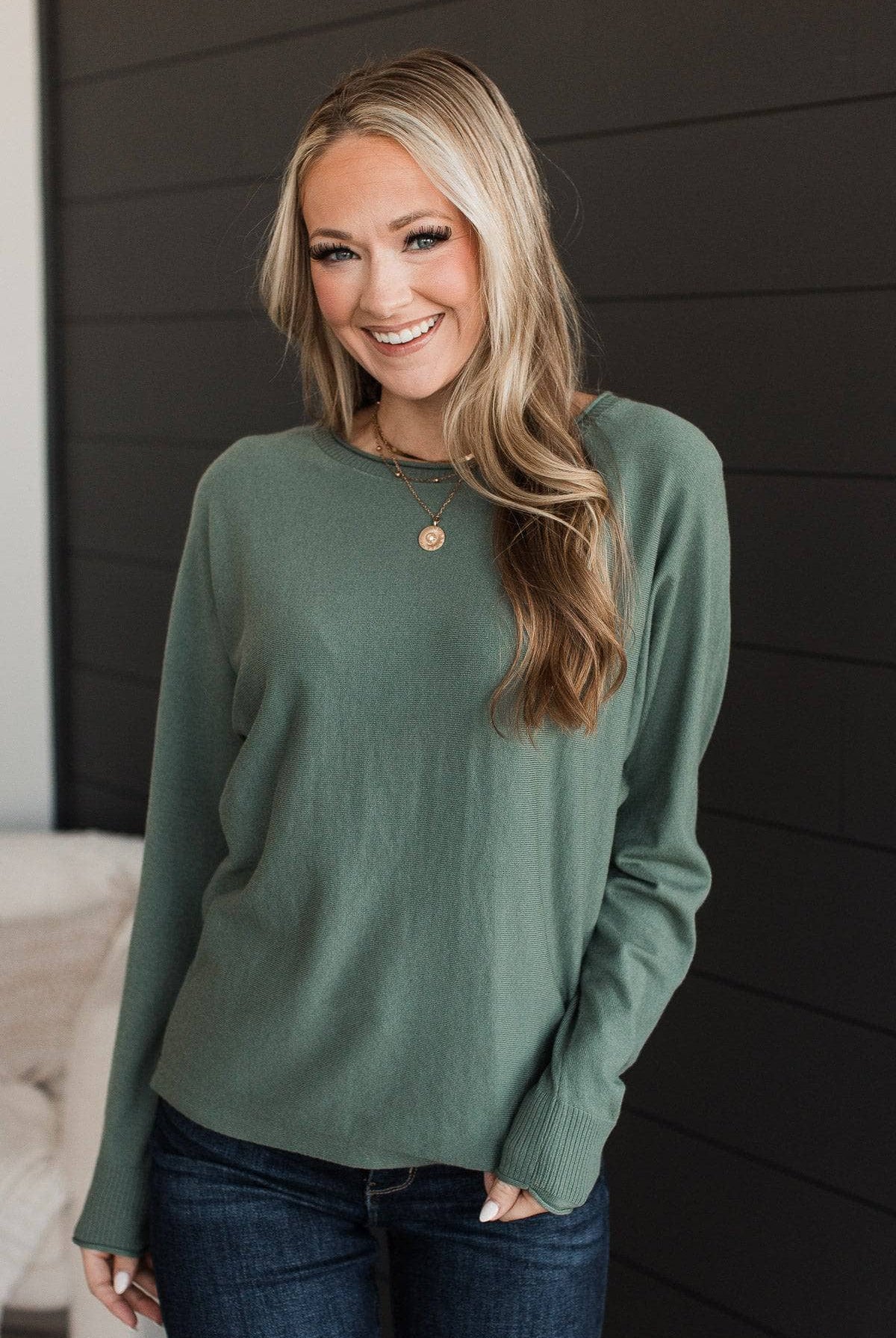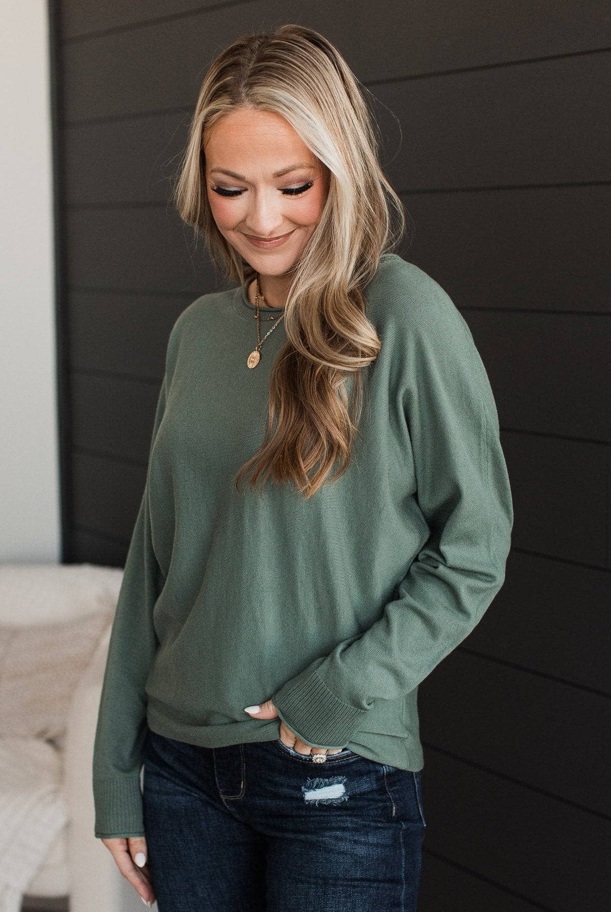 Do Good Short Dolman Sleeve Sweater- Dark Sage