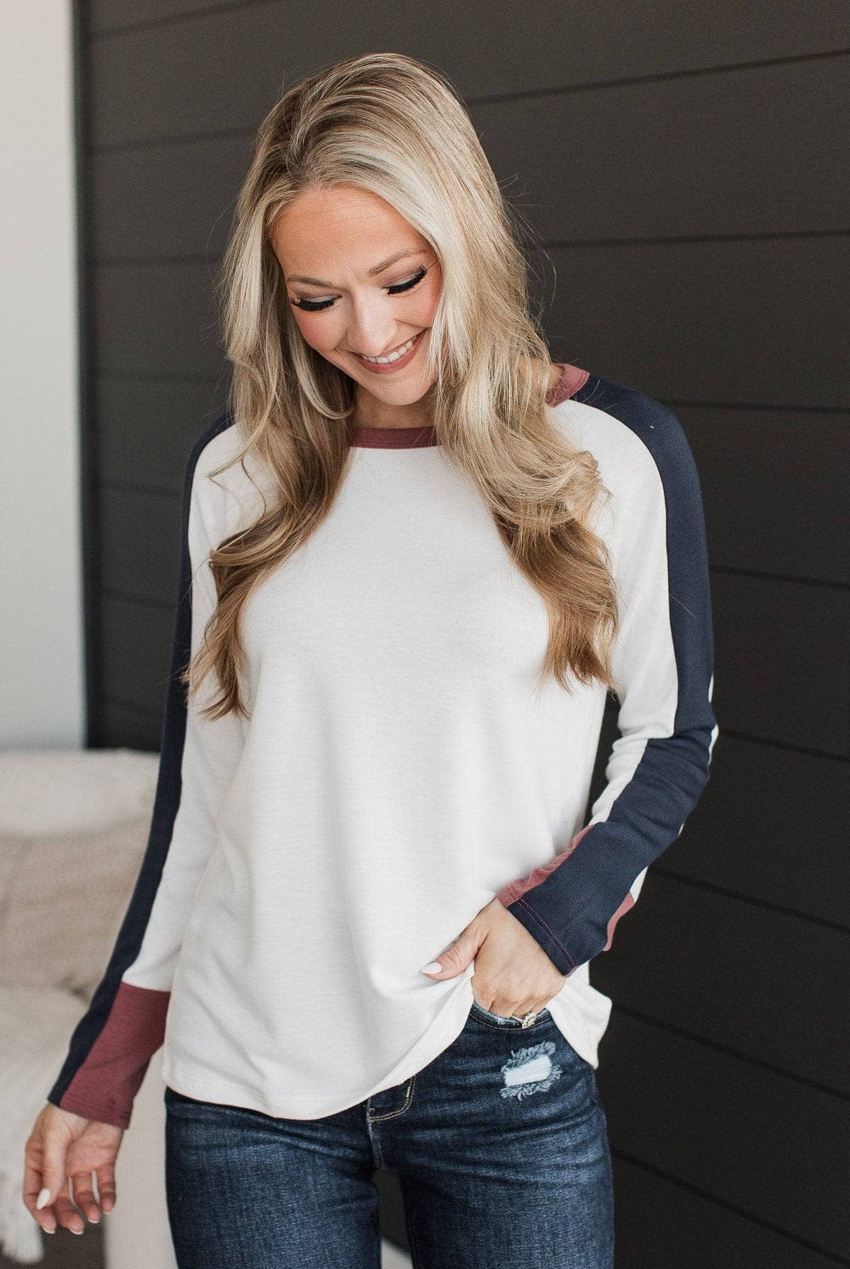 Complete Mood Color Block Top- Ivory & Dark Navy