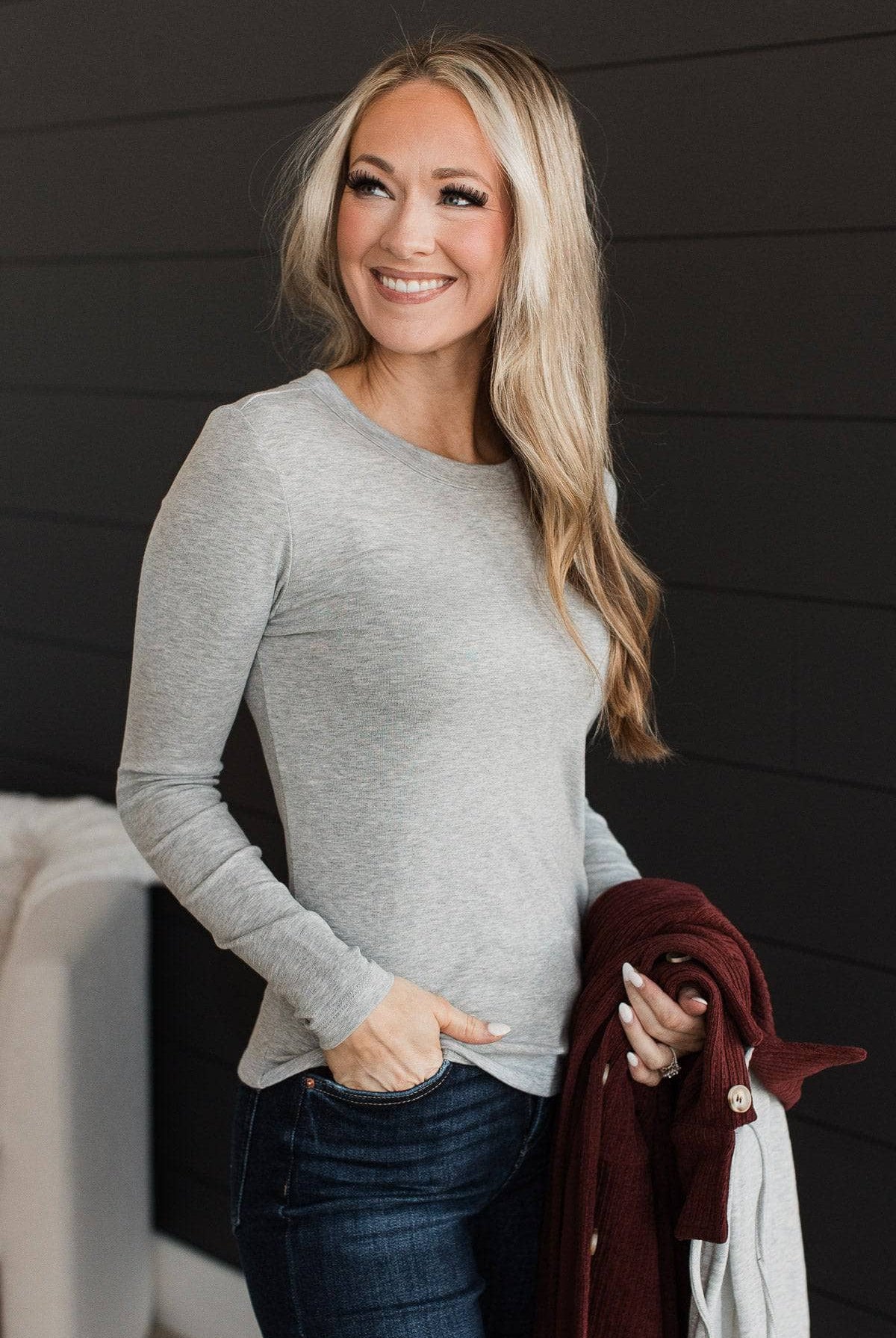 Miles Between Us Long Sleeve Top- Heather Grey