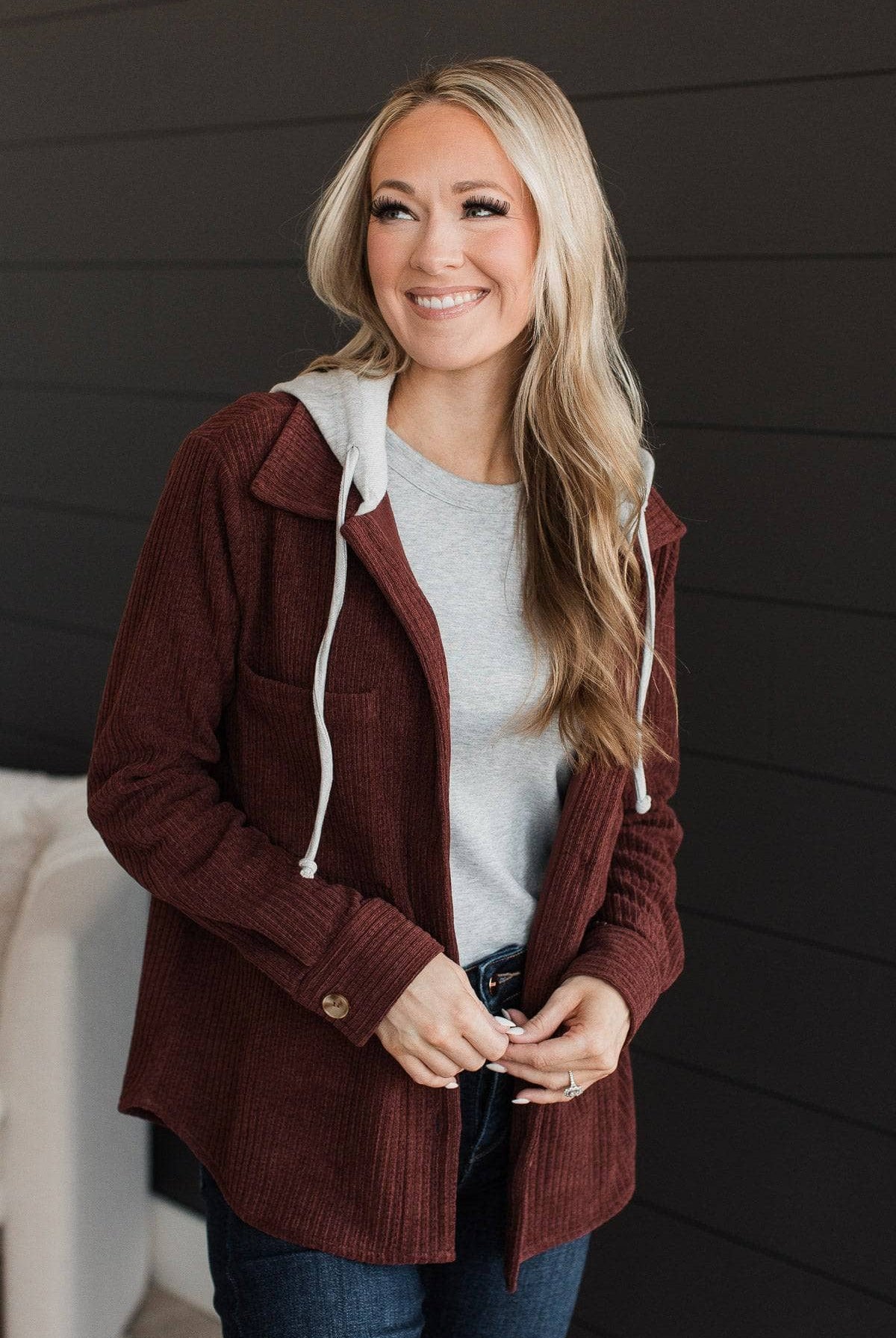 Exceptional Sights Ribbed Button Jacket- Dark Rust