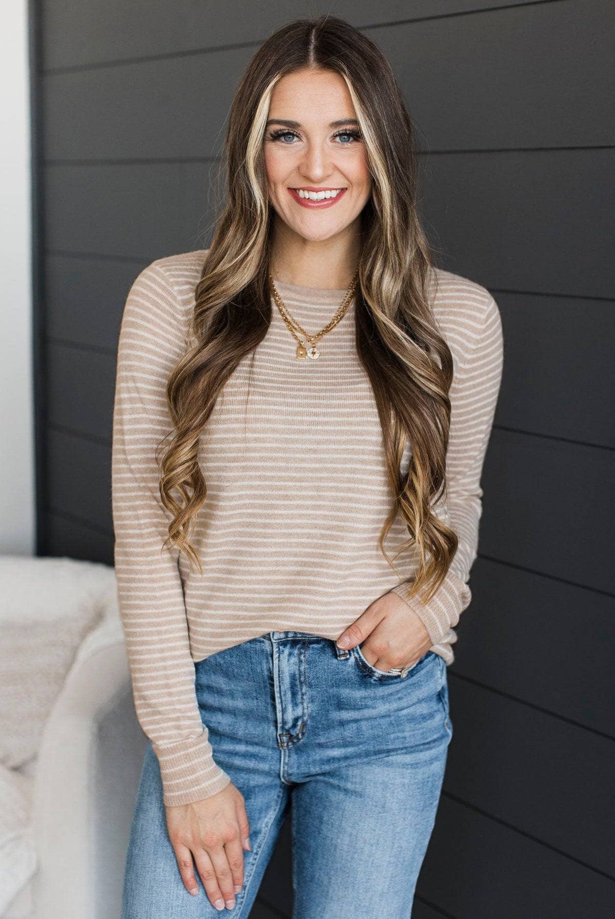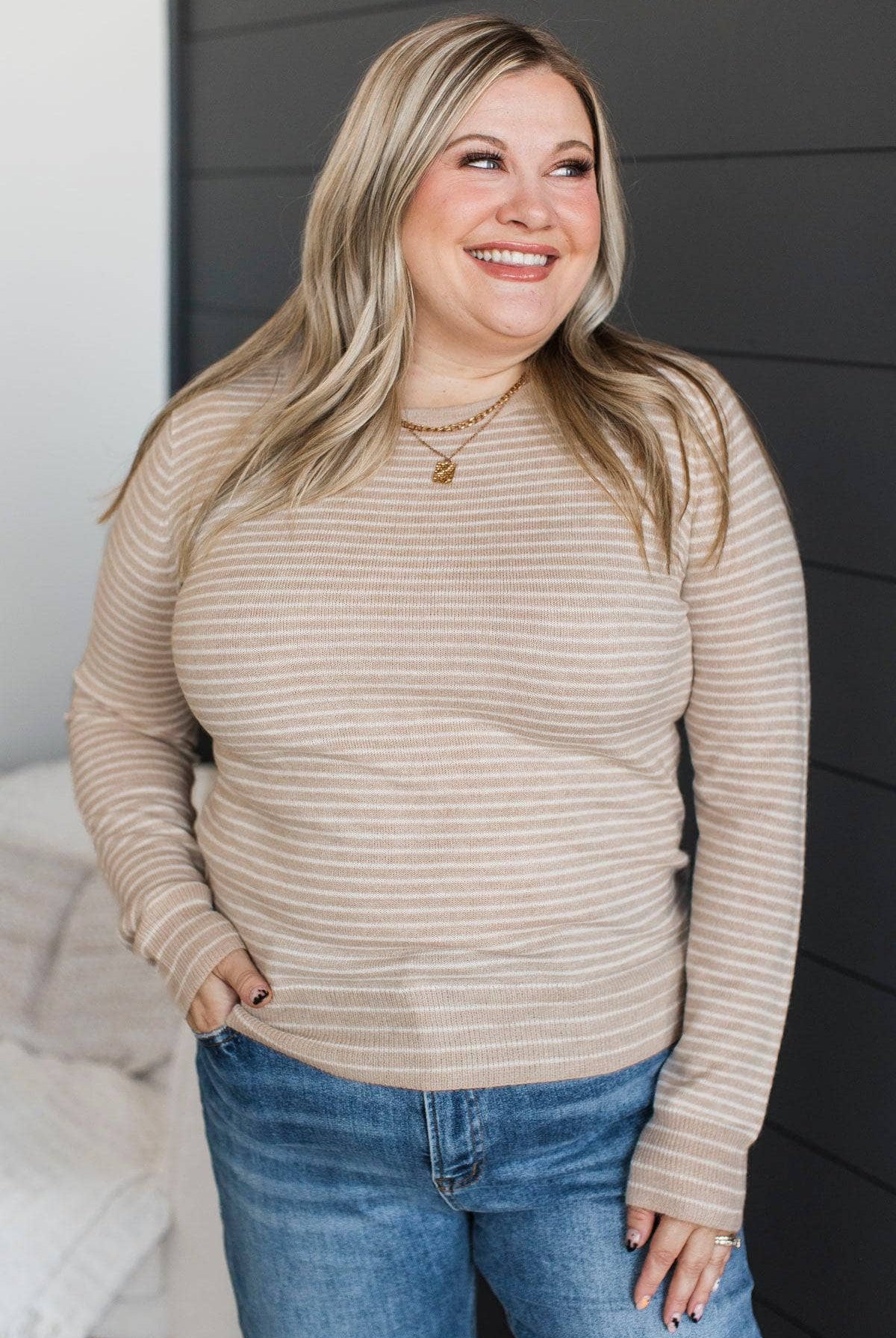 Stay Genuine Striped Knit Sweater- Oatmeal