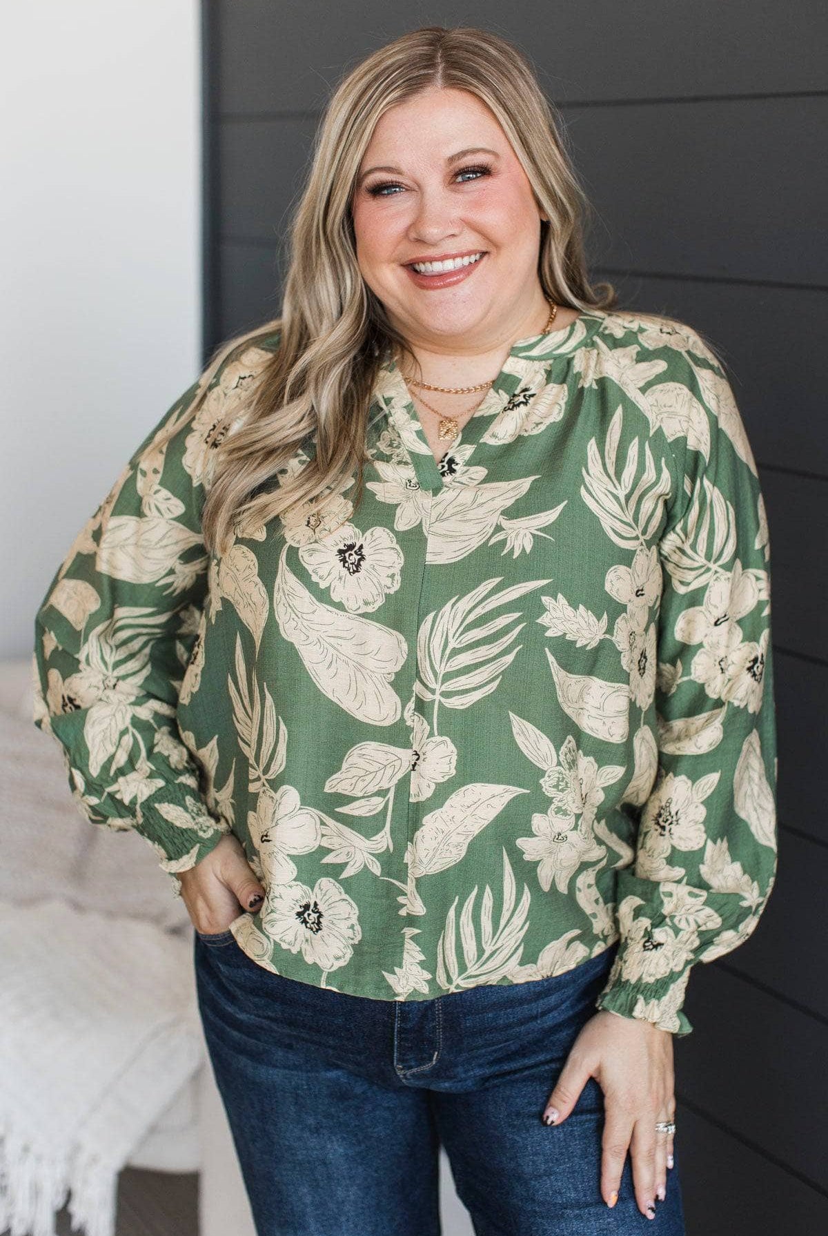 Stay Grateful Long Sleeve Floral Top- Sage