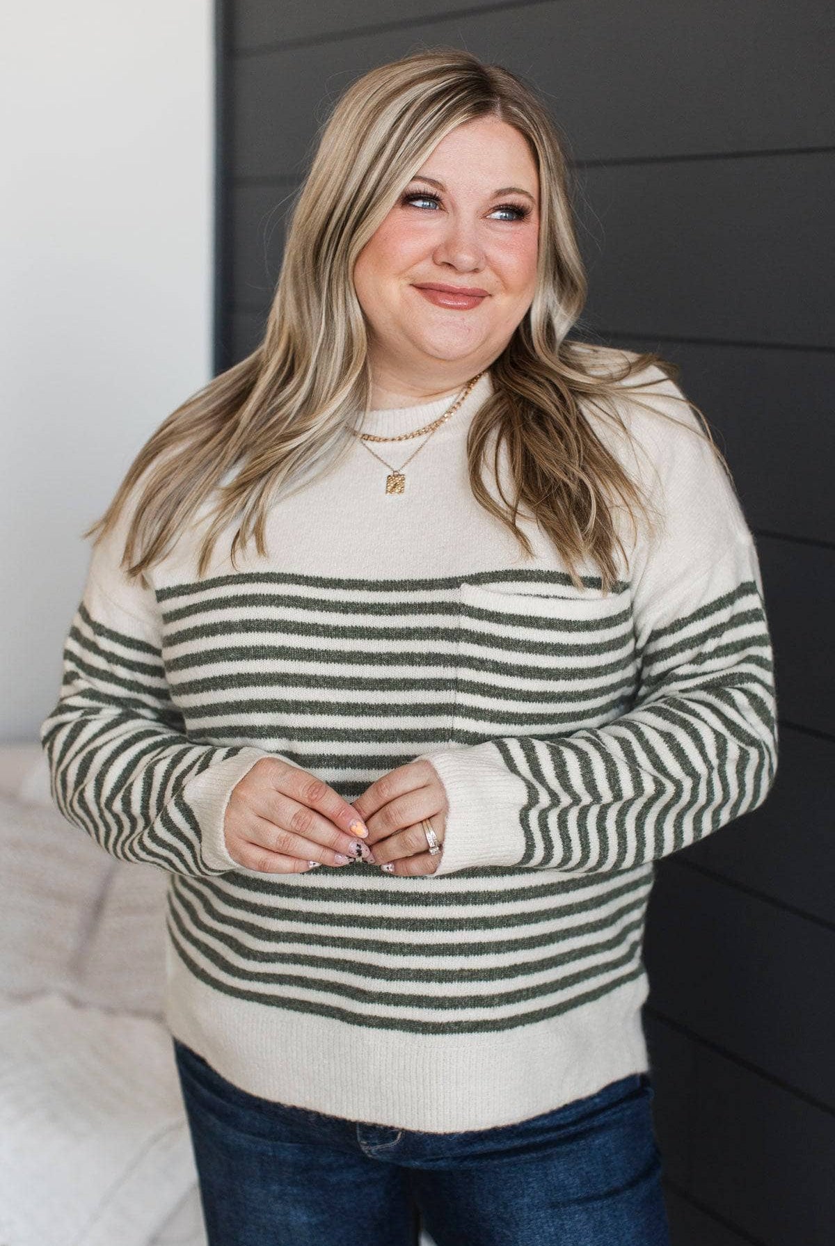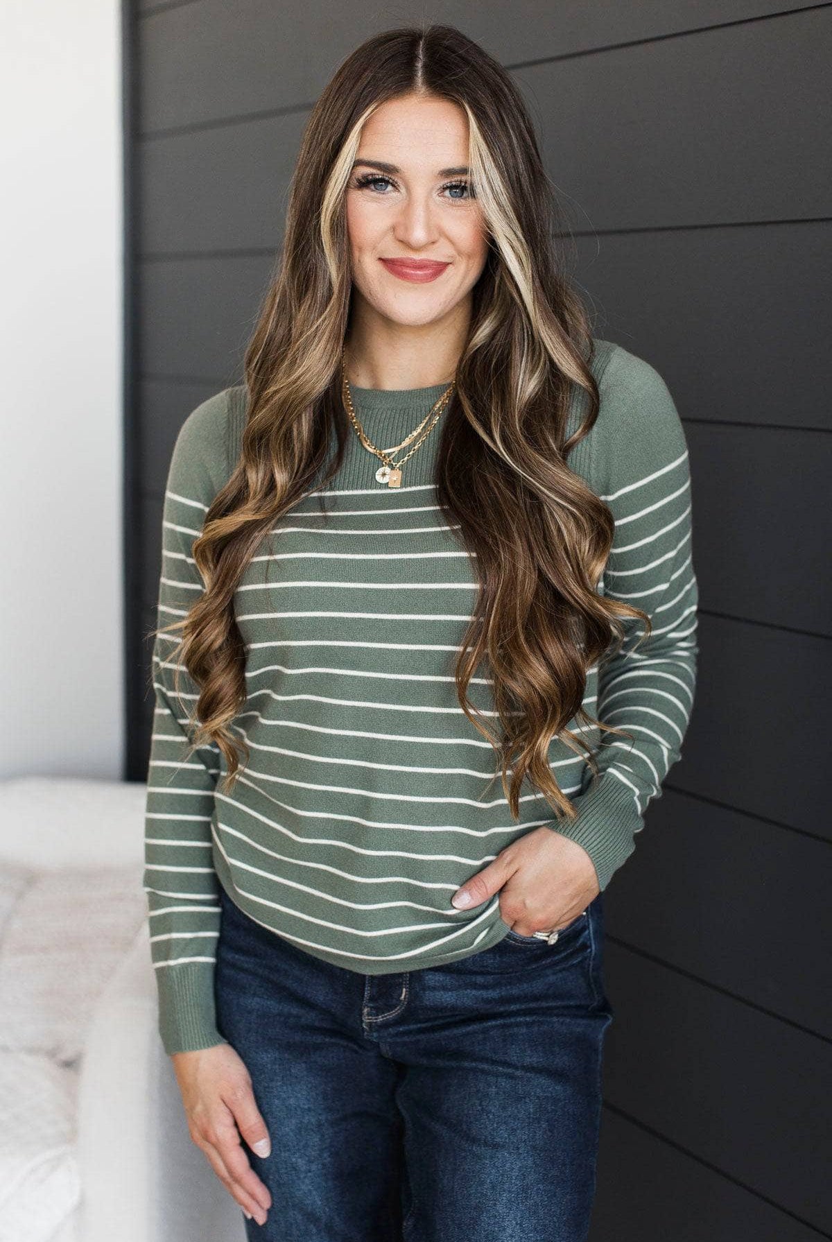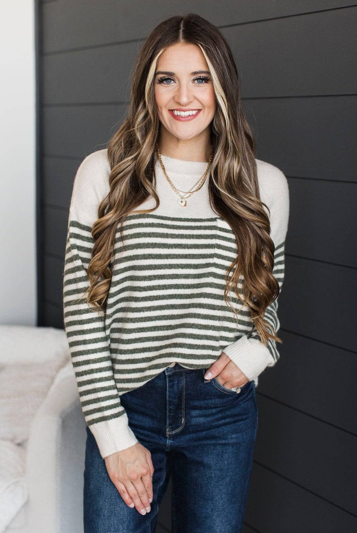 So Exciting Striped Knit Sweater- Ivory & Dark Sage