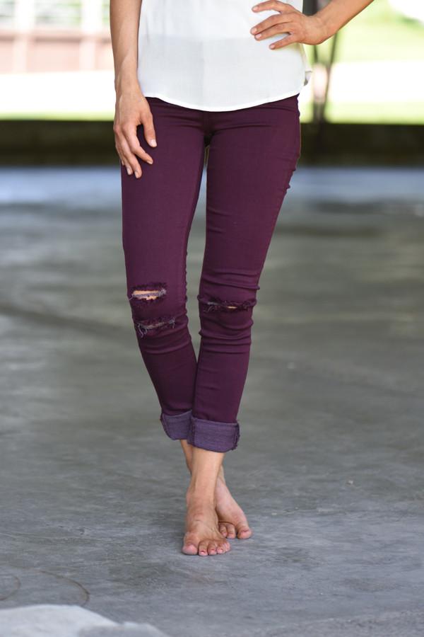 Kan Can Distressed Jeans ~ Burgundy