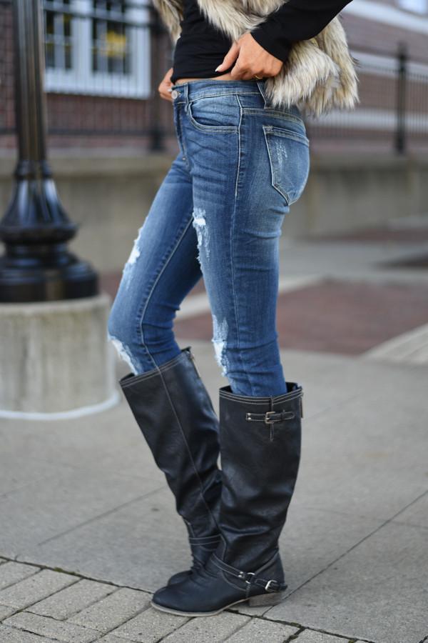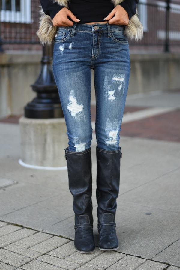 Kan Can Black Distressed Skinny Jeans