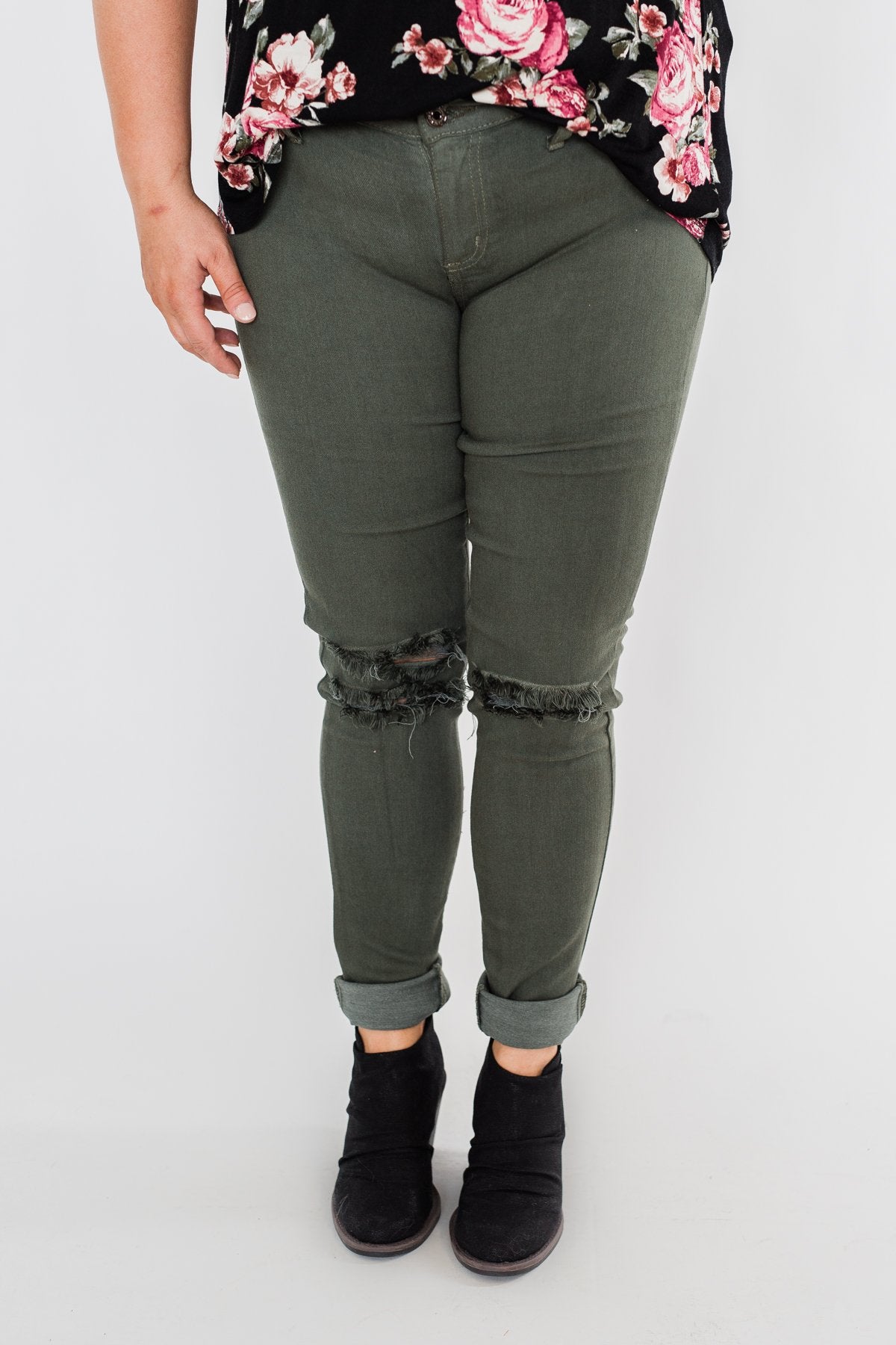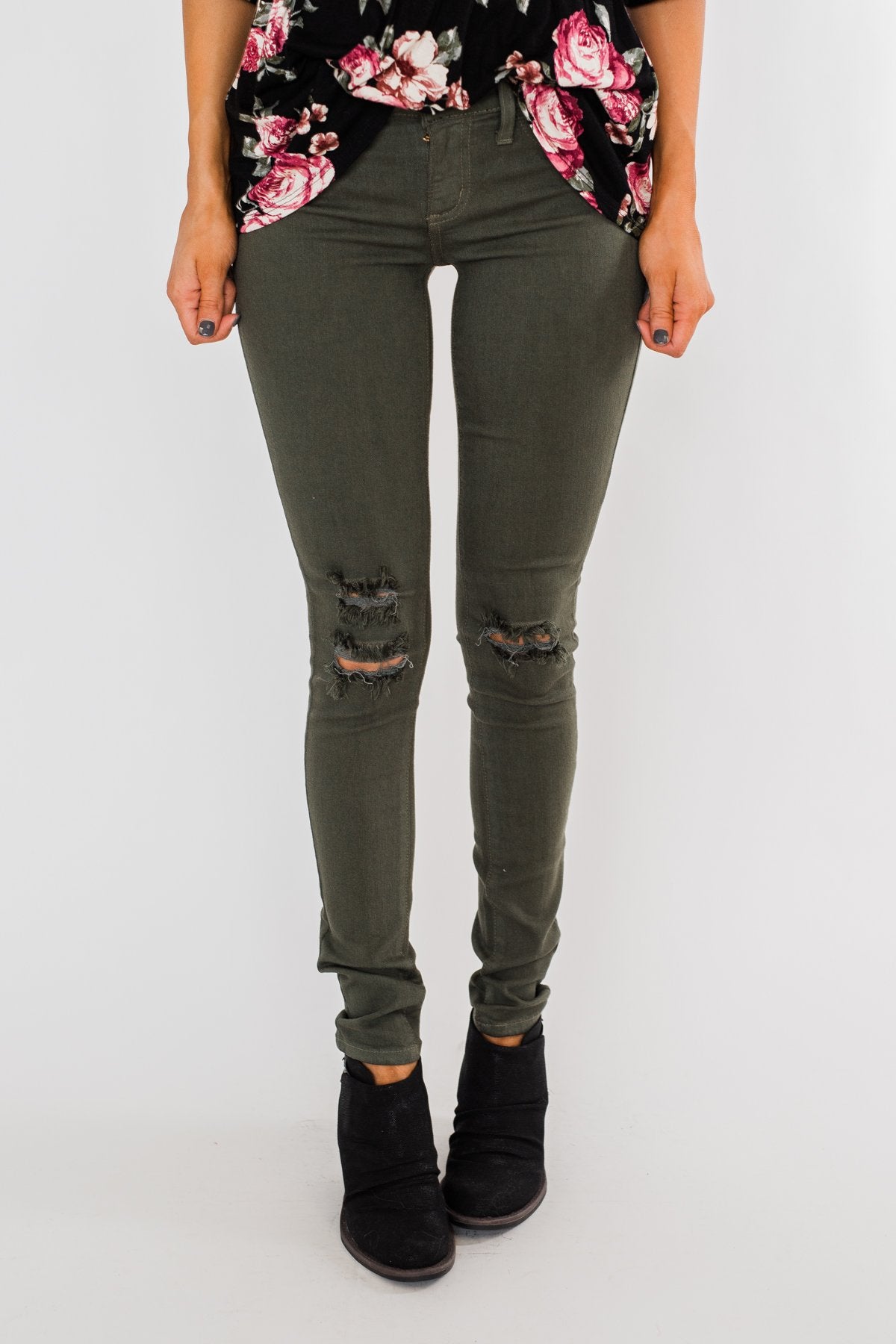 Kan Can Jeans- Knee Distressed Army Green