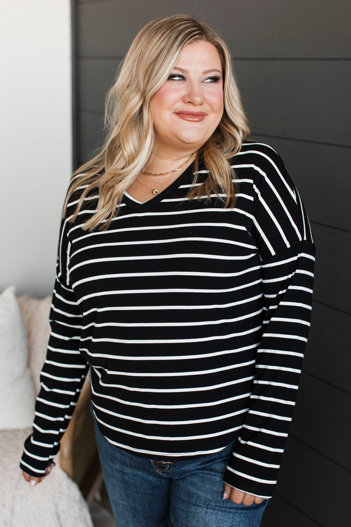 Sheer Joy Long Sleeve Striped Top- Black