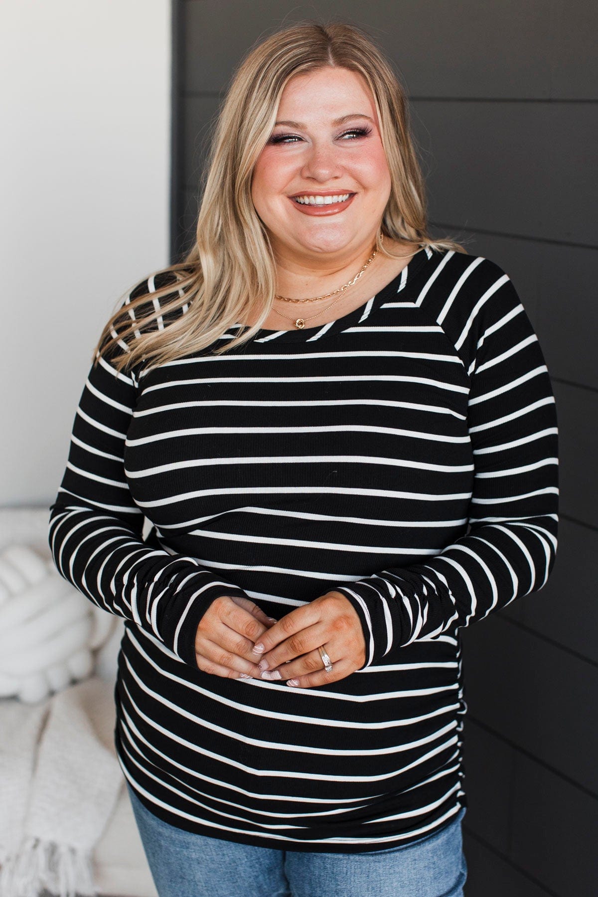 All That Really Matters Ruched Top- Black & Ivory