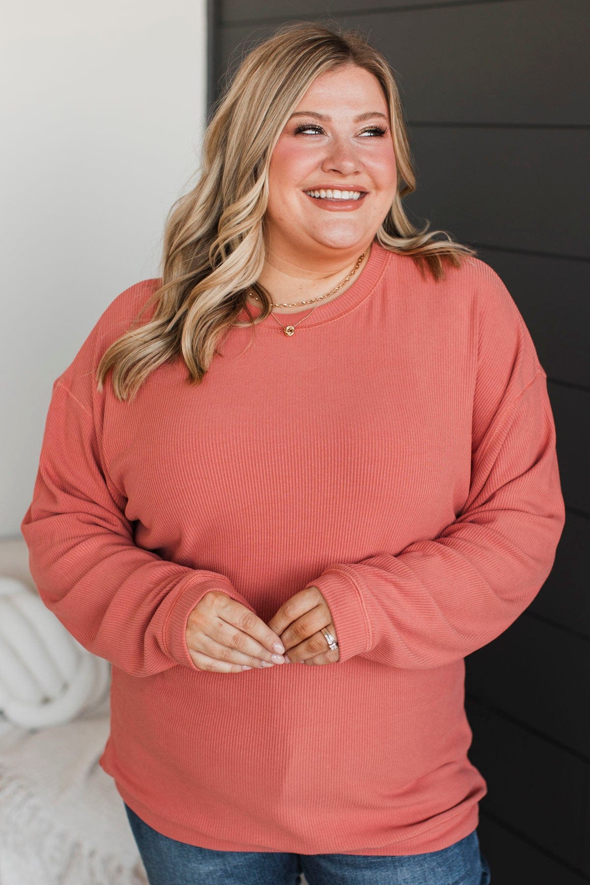 Express It All Knit Pullover Top- Dark Peach