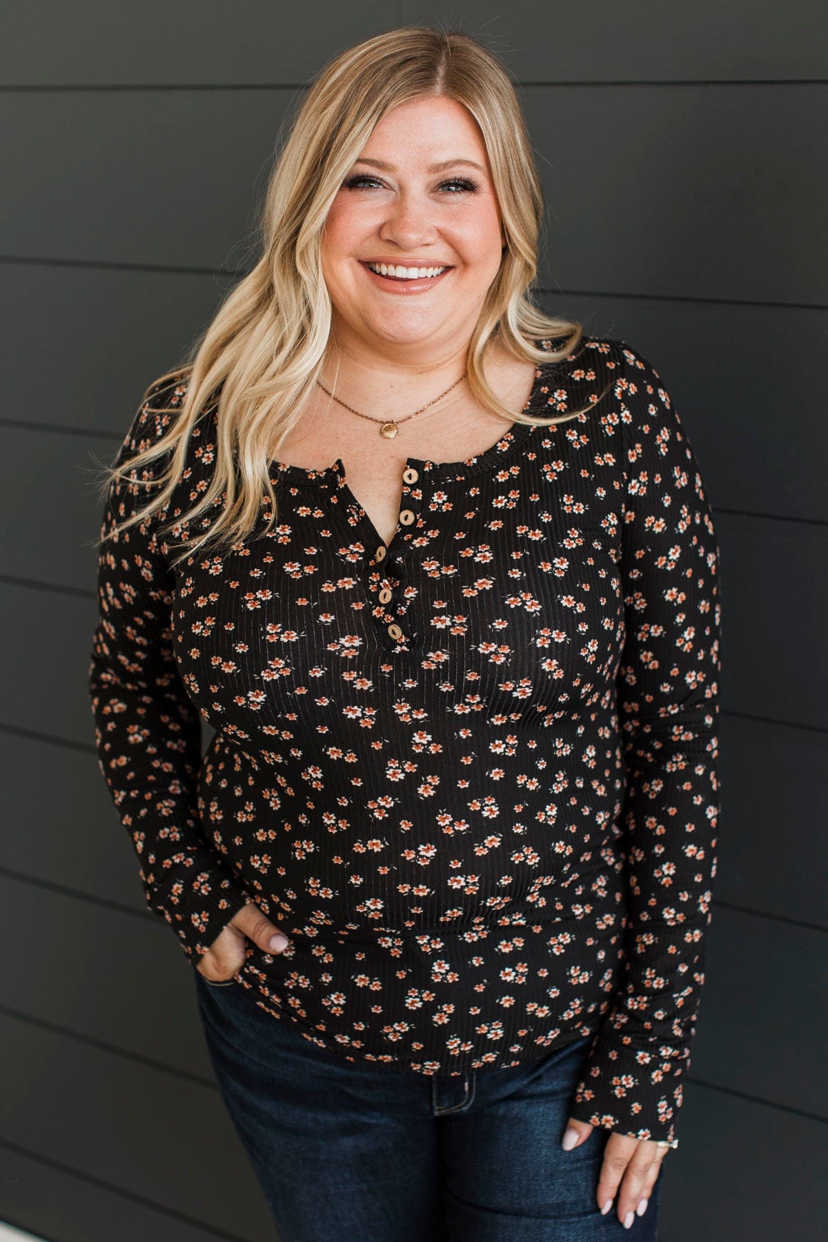 Going Along Floral Henley Top- Black & Rust