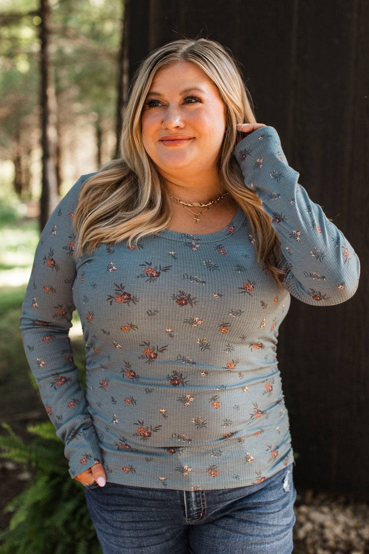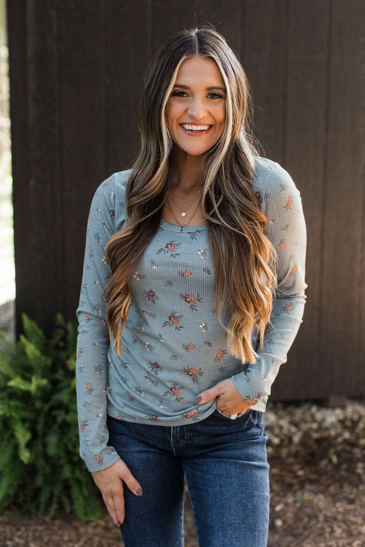 Feeling Hopeful Long Sleeve Floral Top- Denim