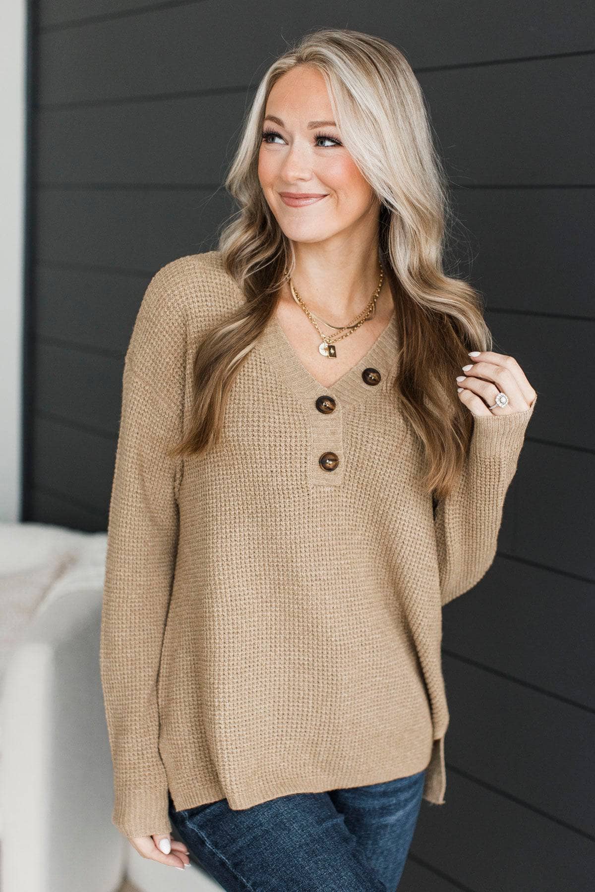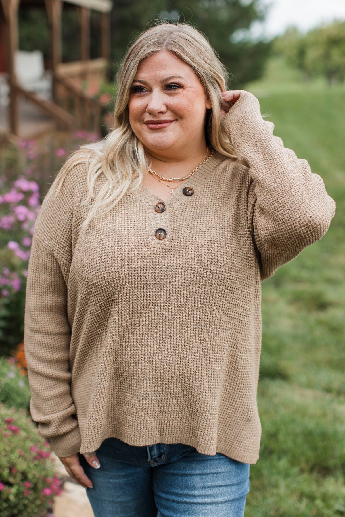 Gotta Start Somewhere Knit Sweater- Dark Beige