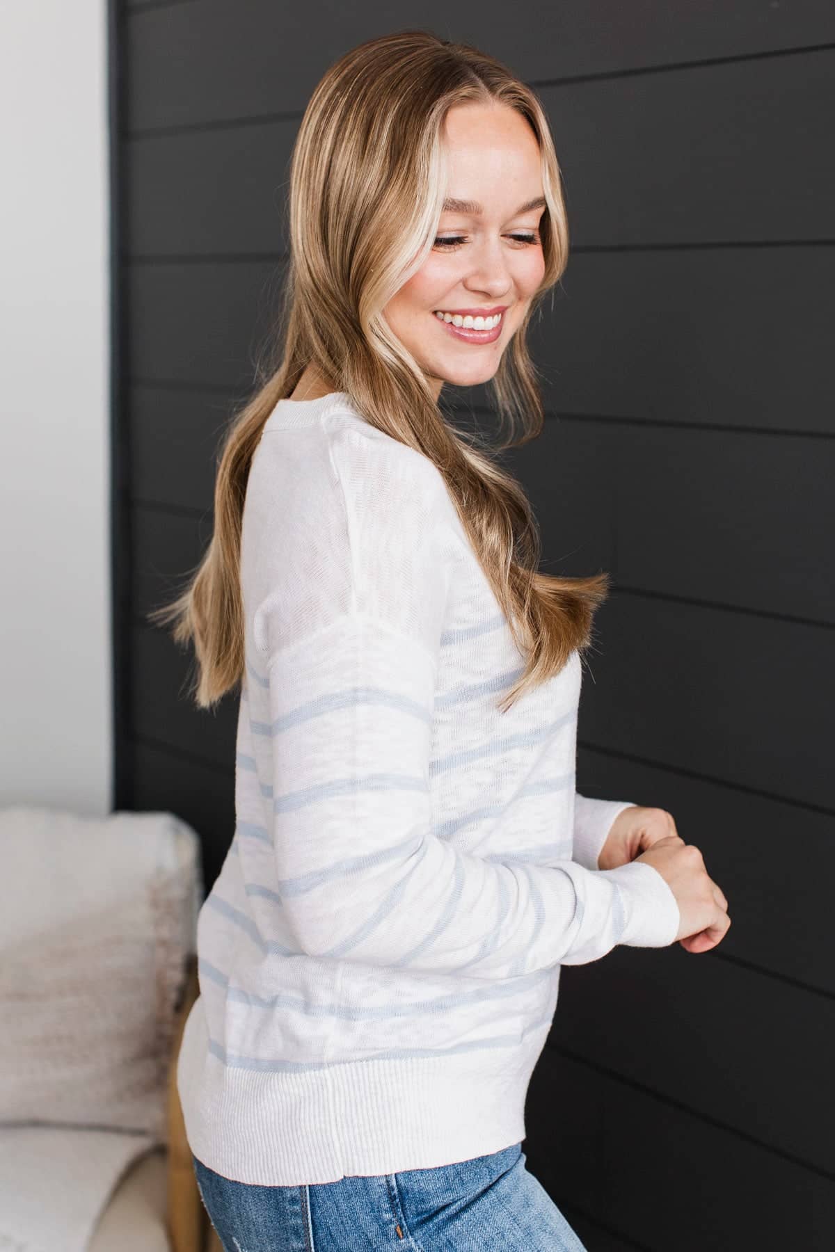 Early Evenings Striped Knit Sweater- Ivory & Blue