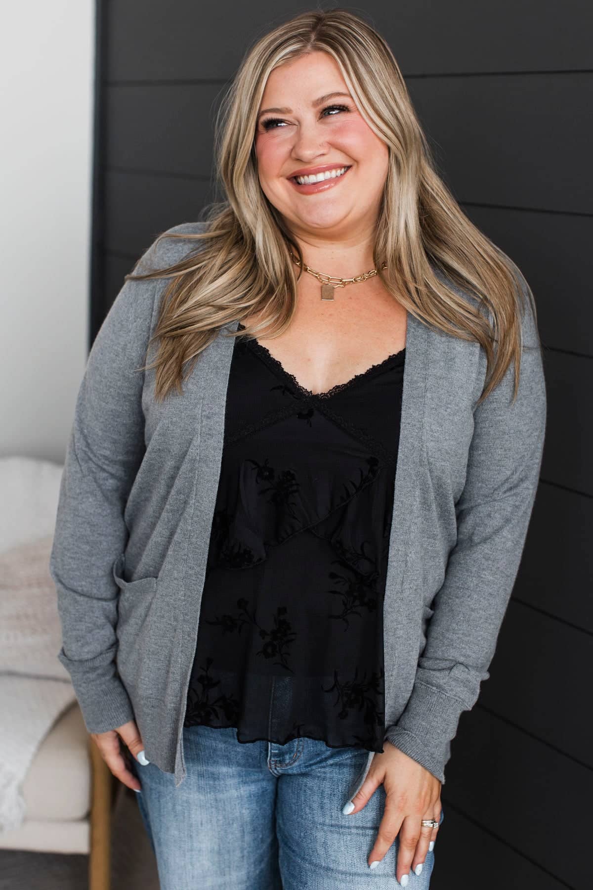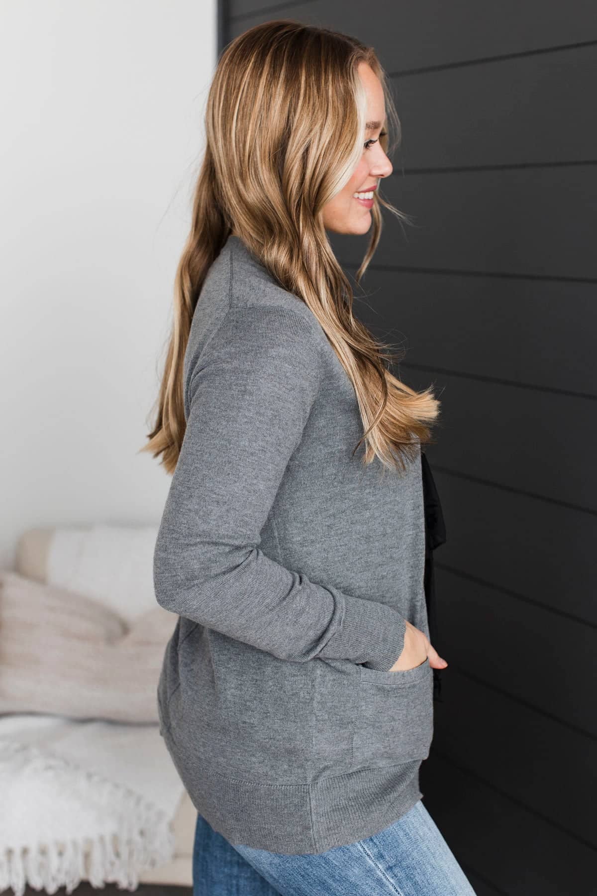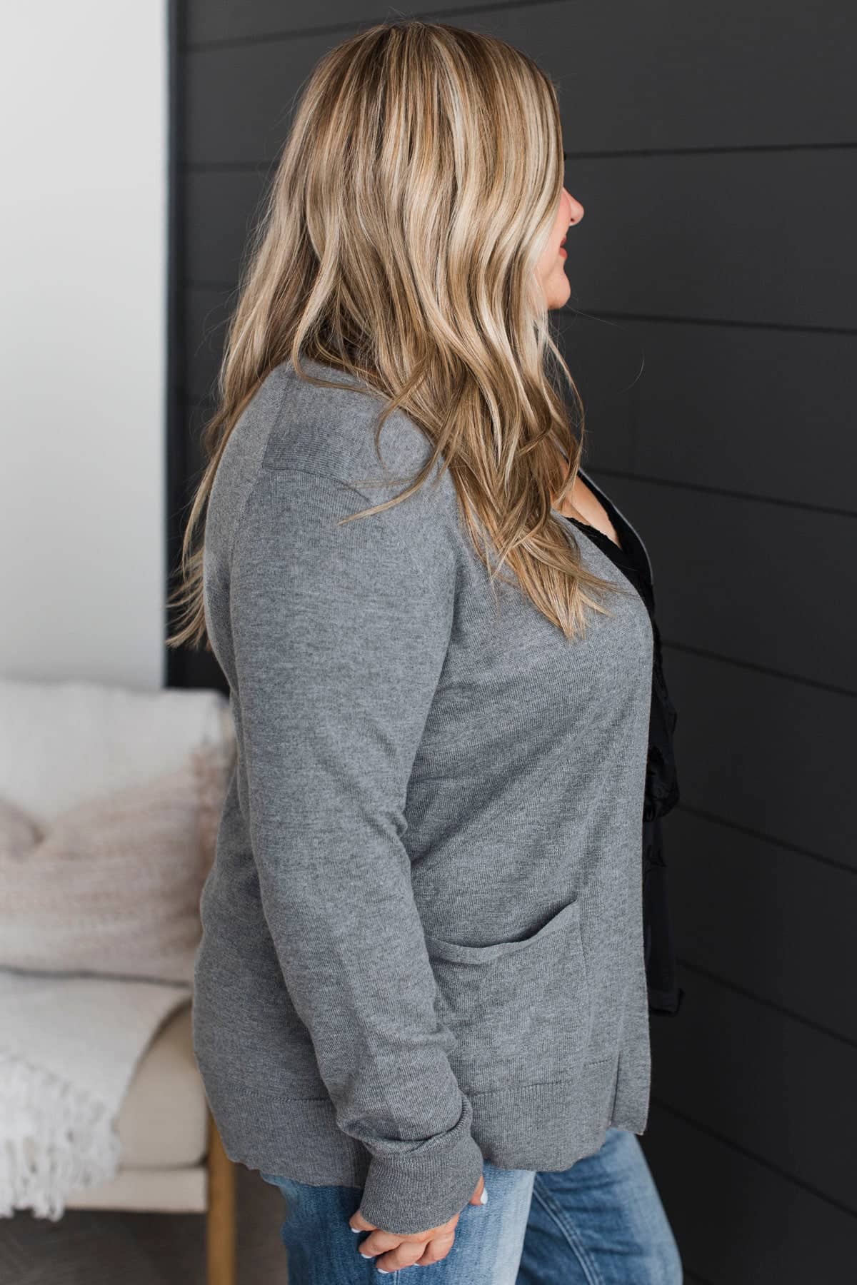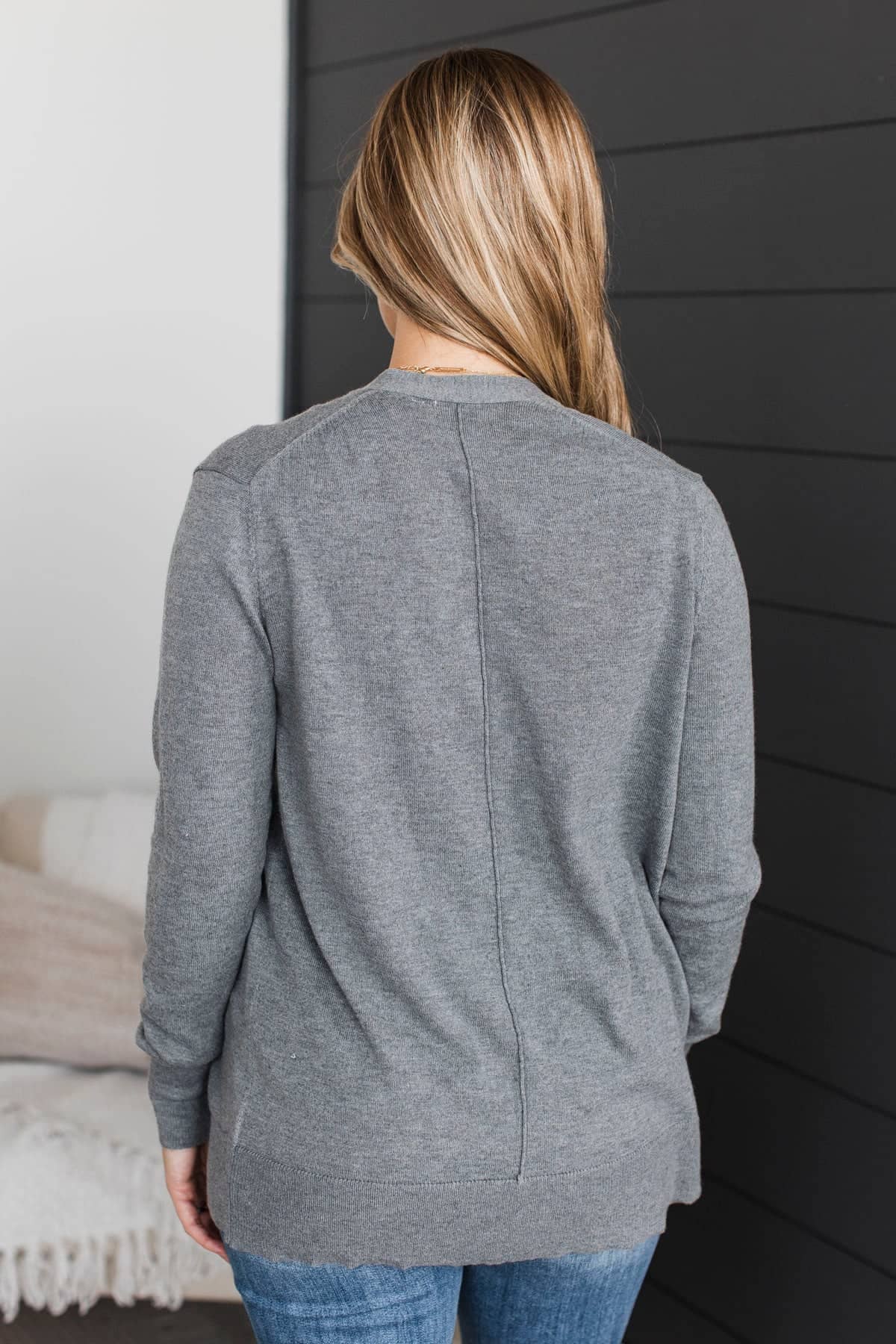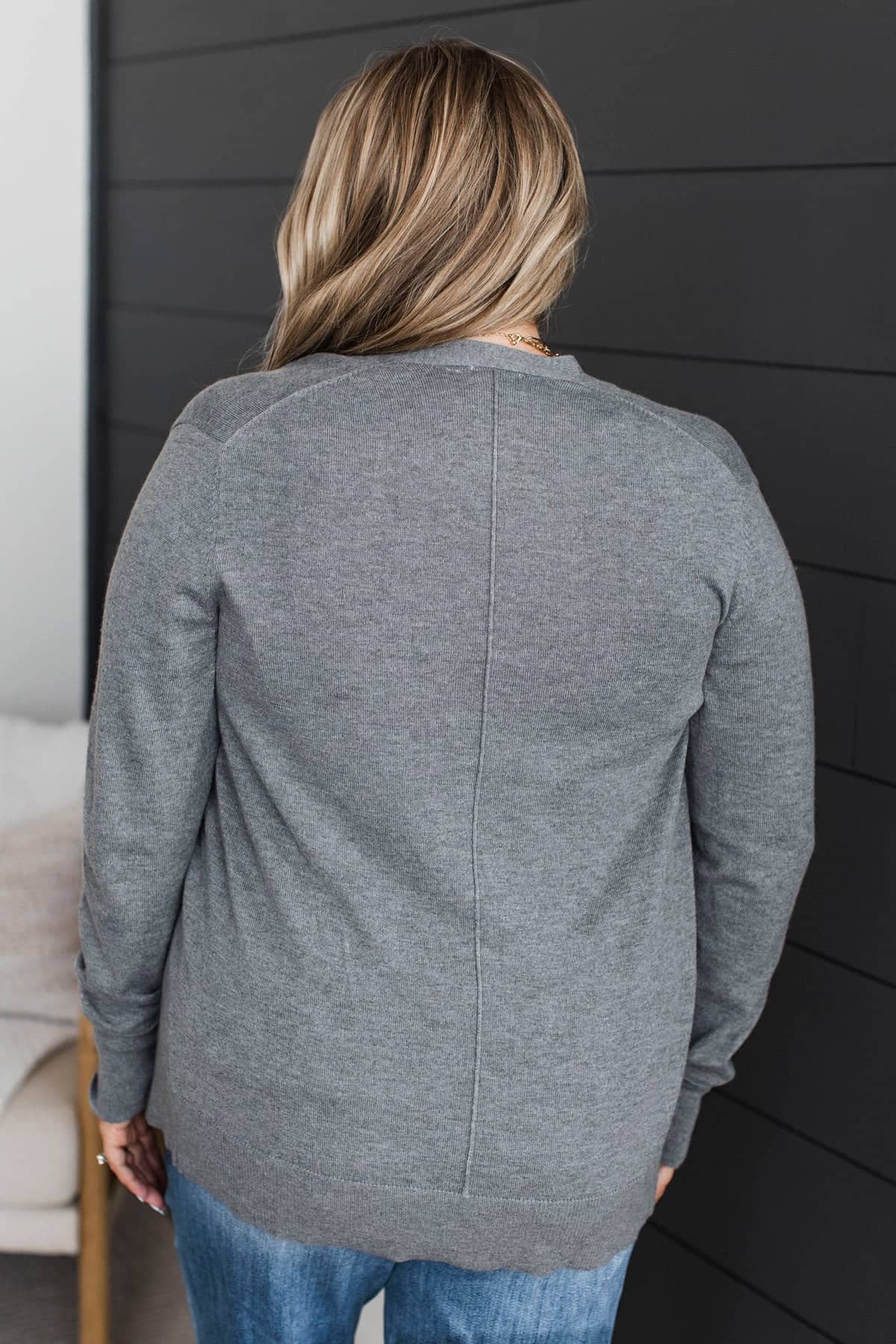 Effortlessly Composed Knit Cardigan- Grey