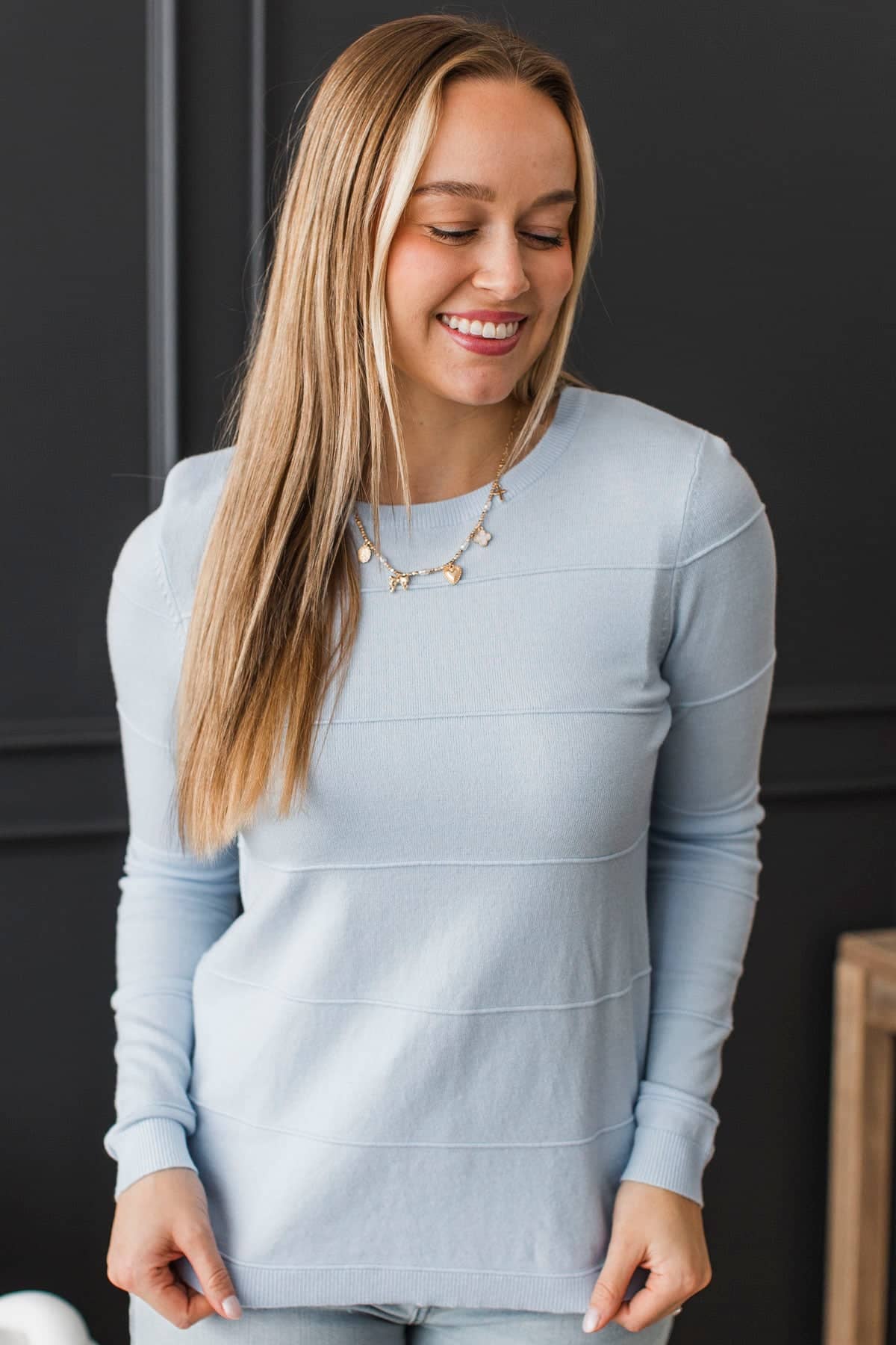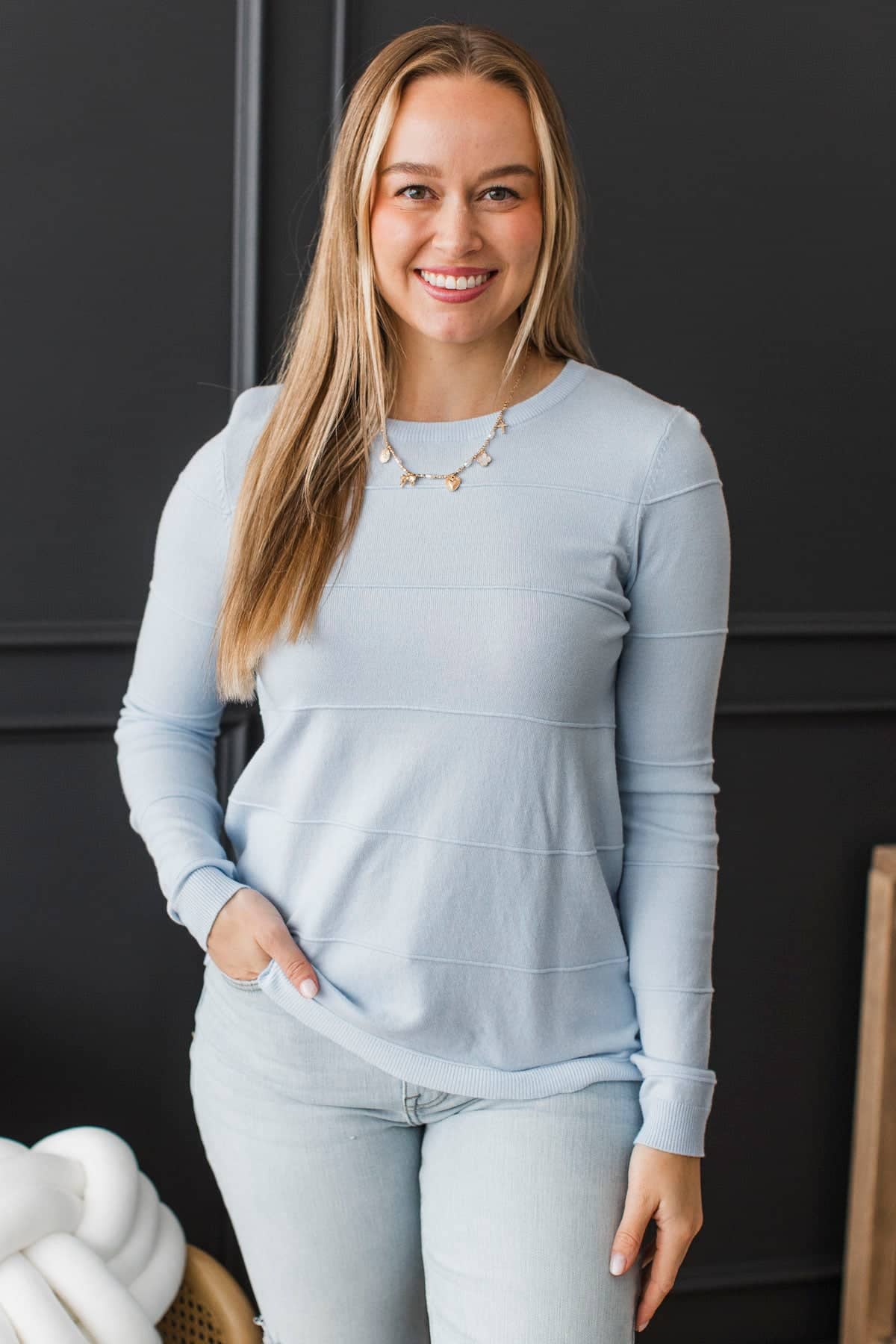 I absolutely love the color - it the prettiest shade of blue. The sweater is lightweight so I feel like it can be worn in almost every season.