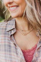 Polish off your look with this three tiered gold necklace! This piece is simple enough to be worn every day. The simple style of this necklace goes with everything!