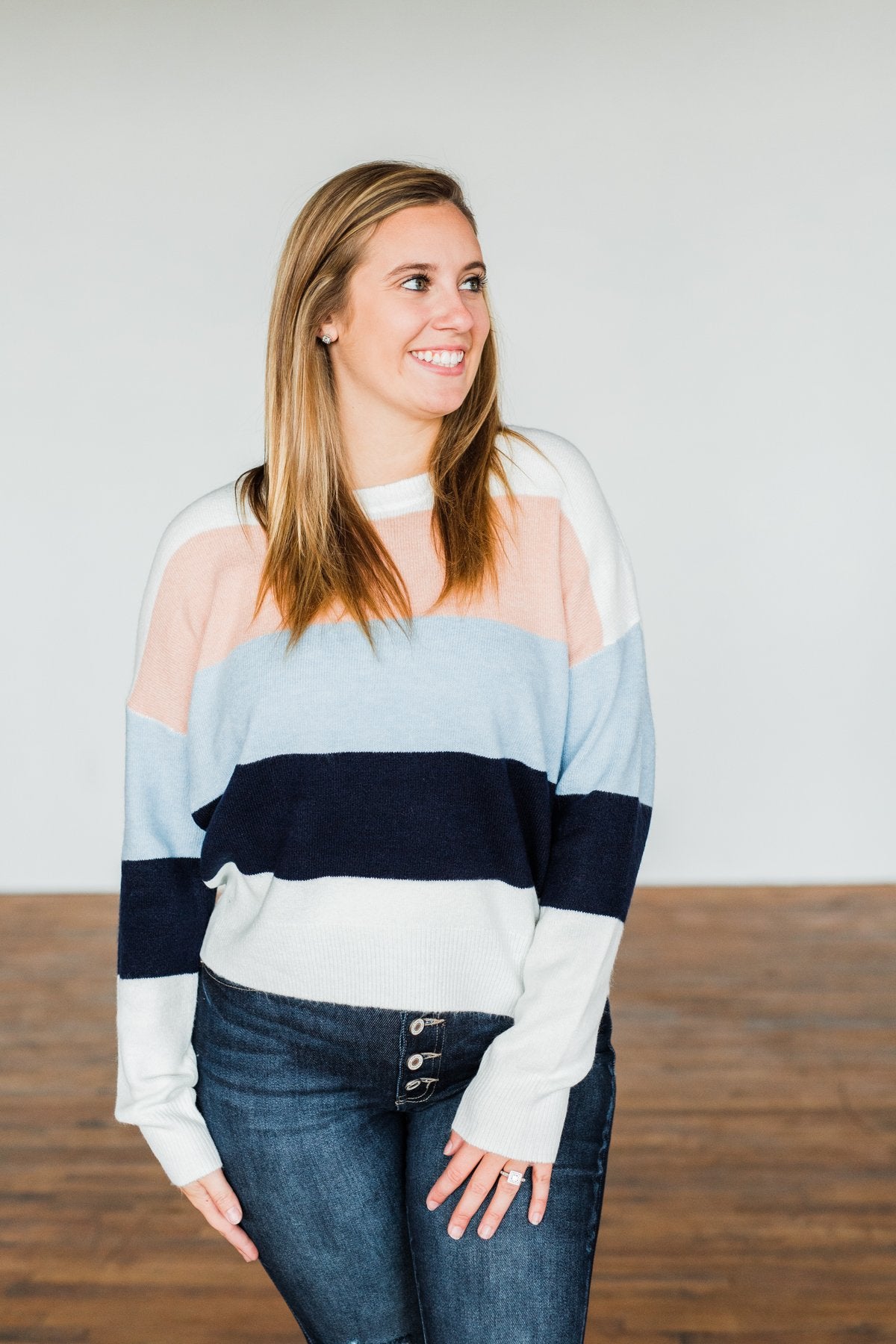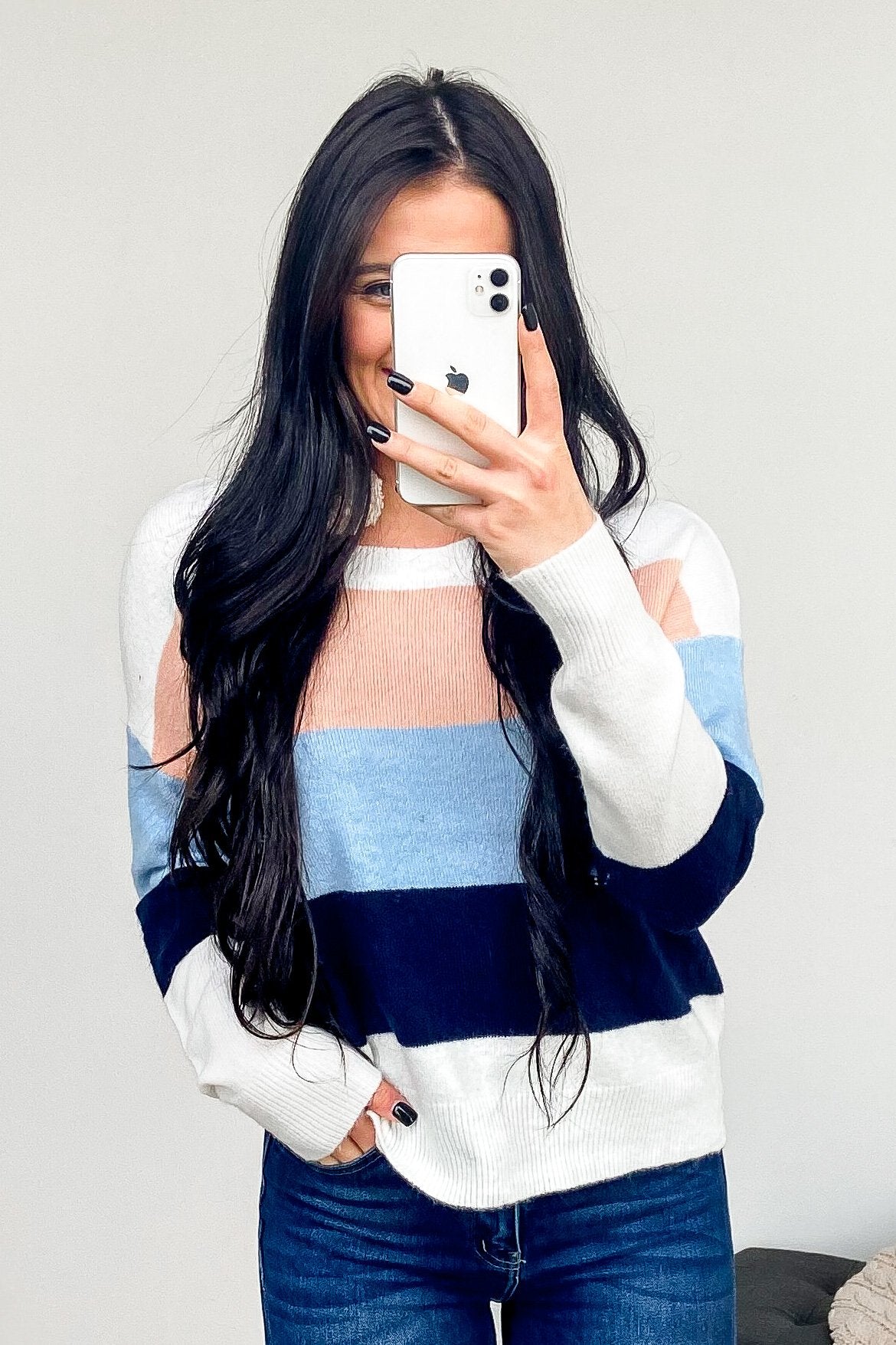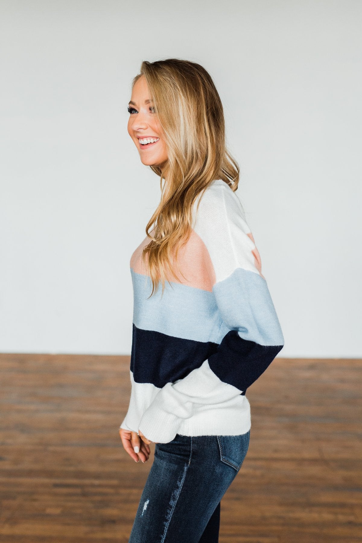 A New Day Color Block Sweater- Dusty Peach, Baby Blue, Navy