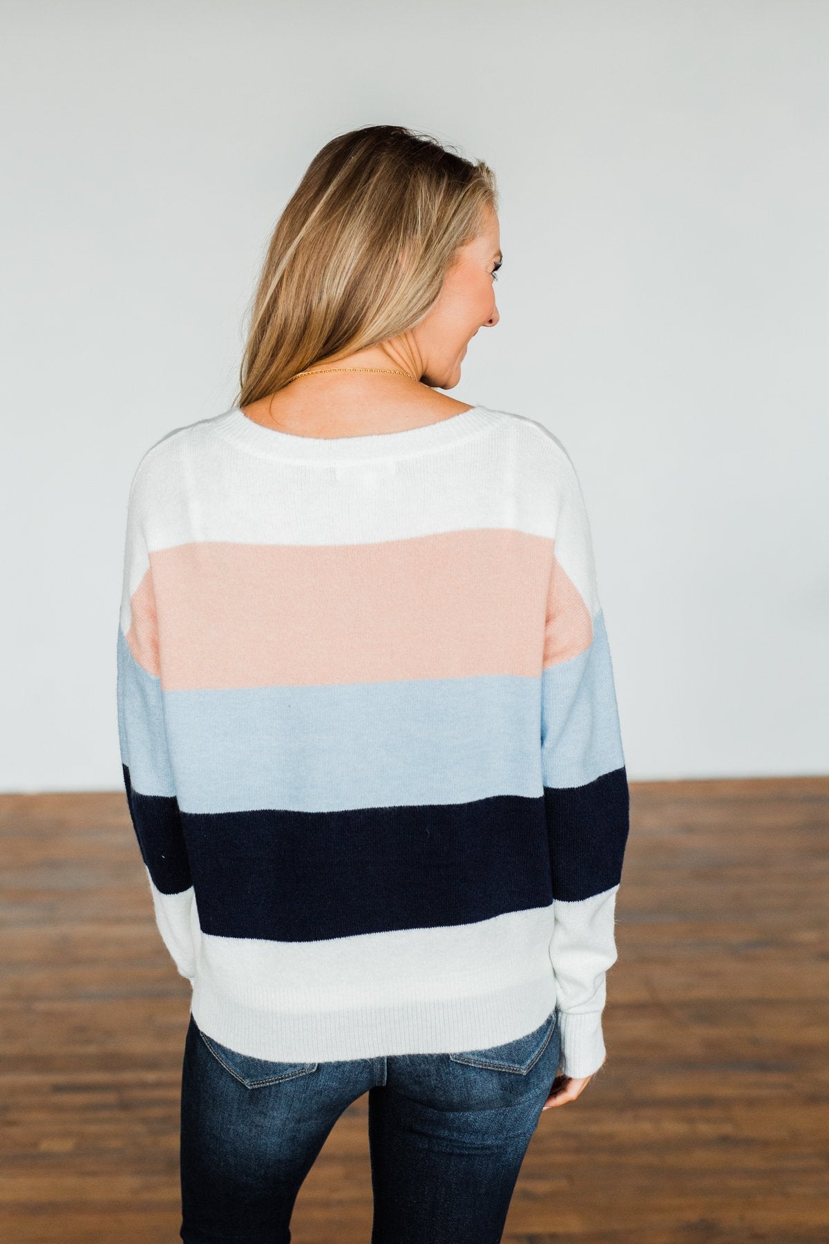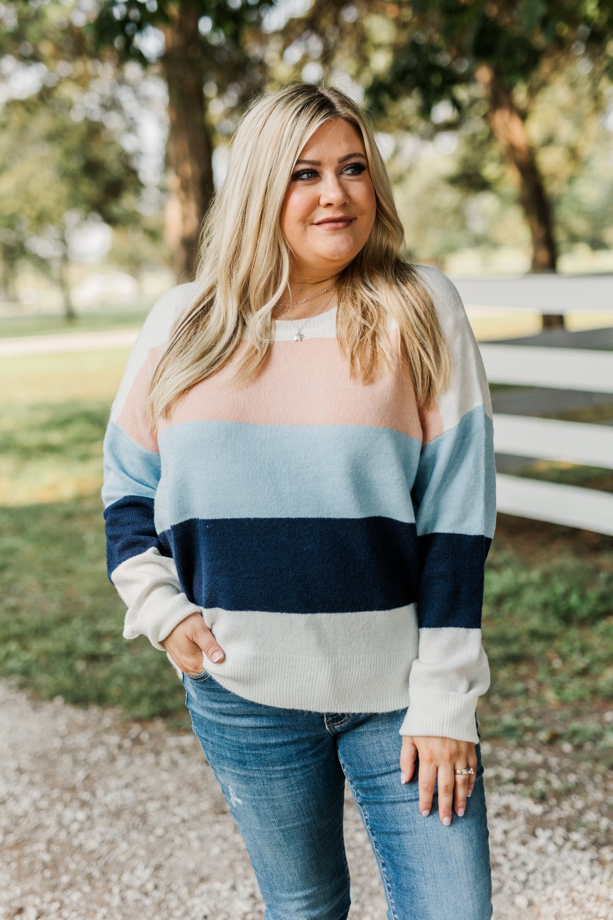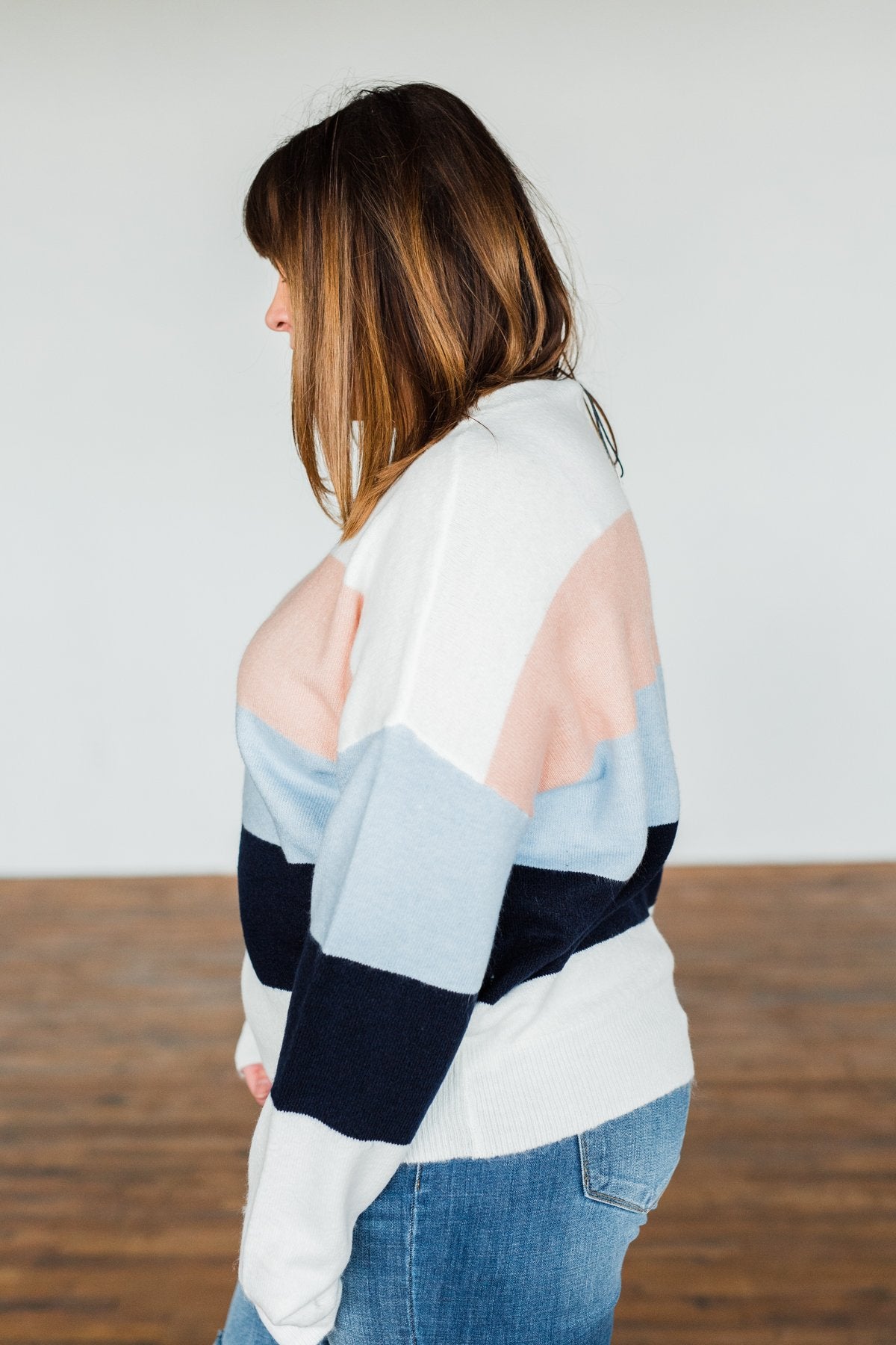 A New Day Color Block Sweater- Dusty Peach, Baby Blue, Navy