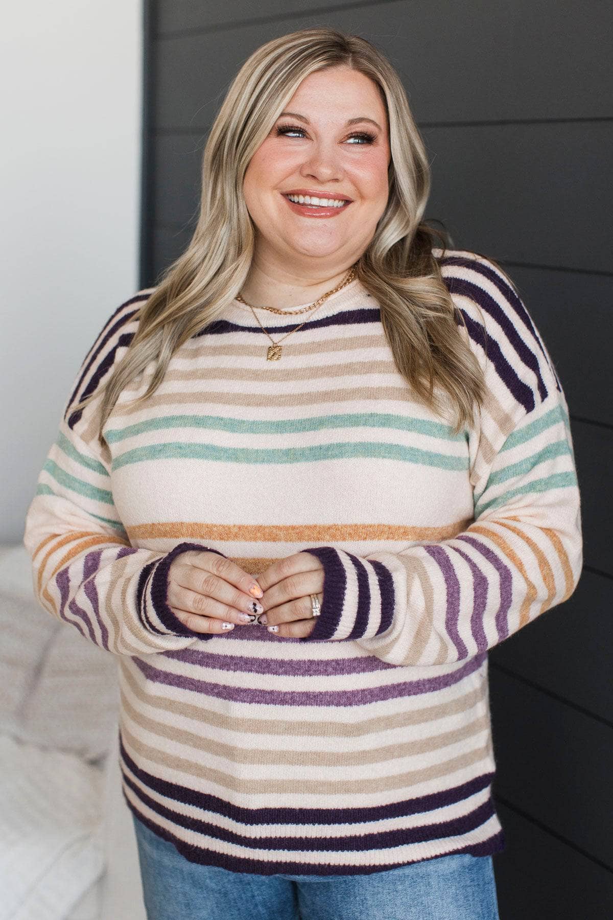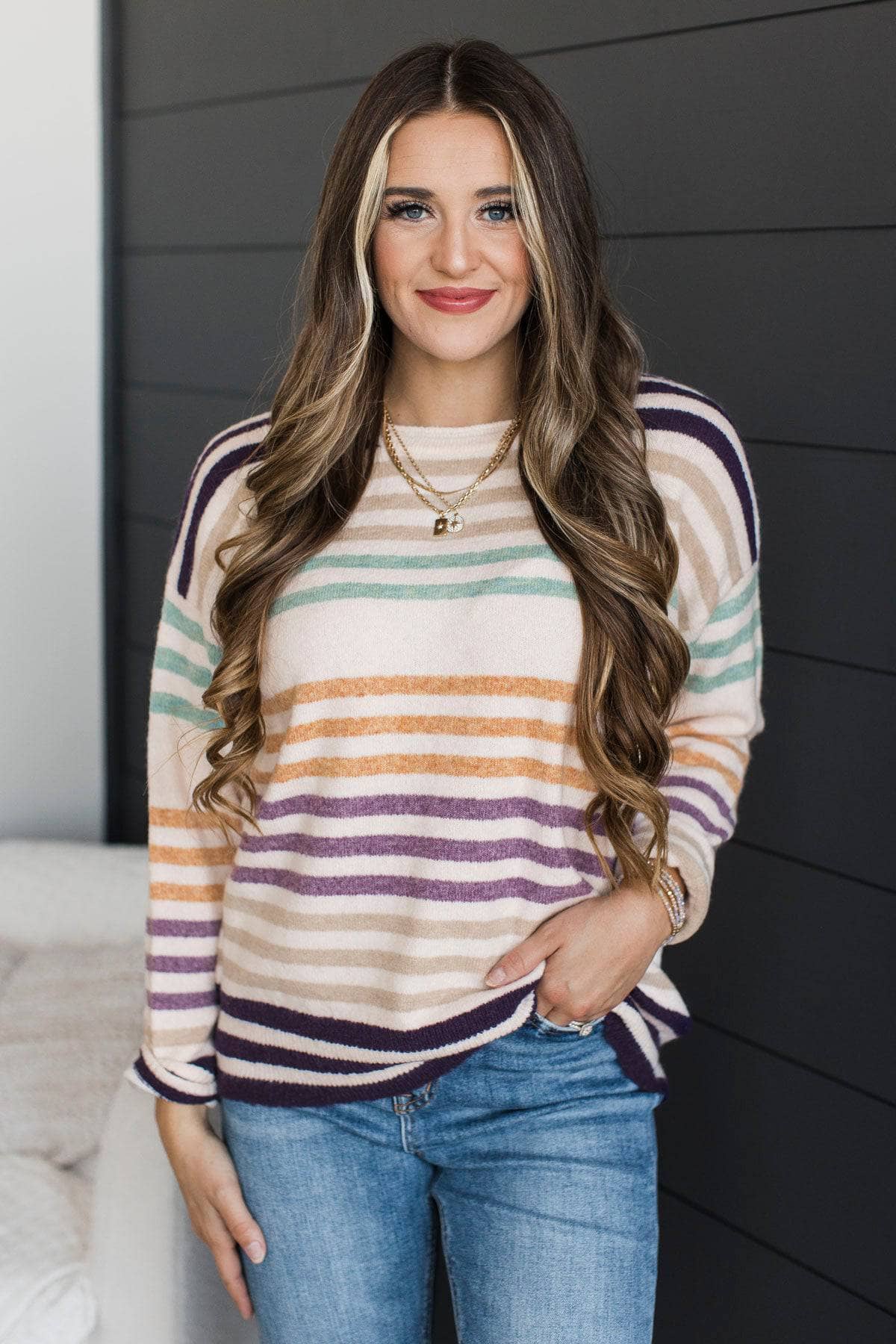 Major Moves Striped Knit Sweater- Light Blush