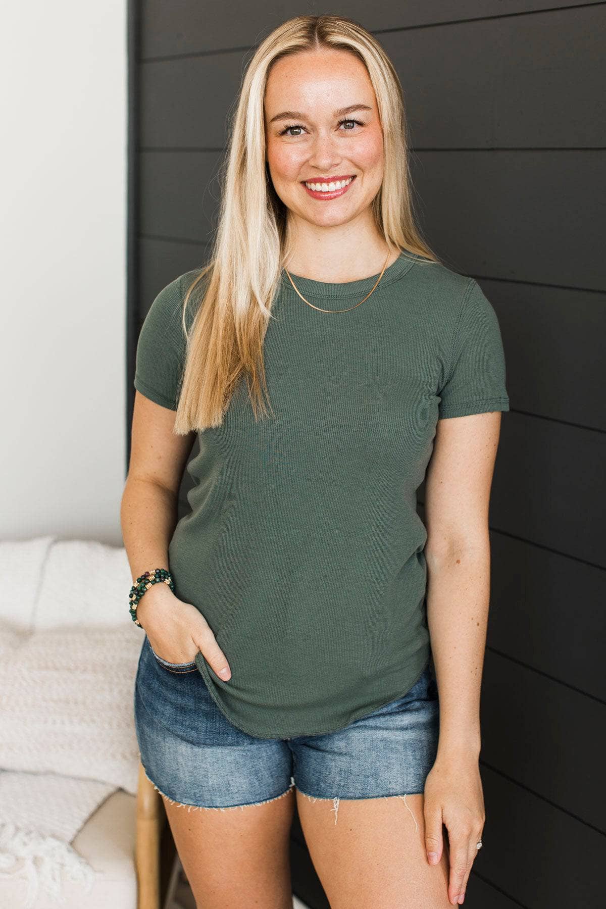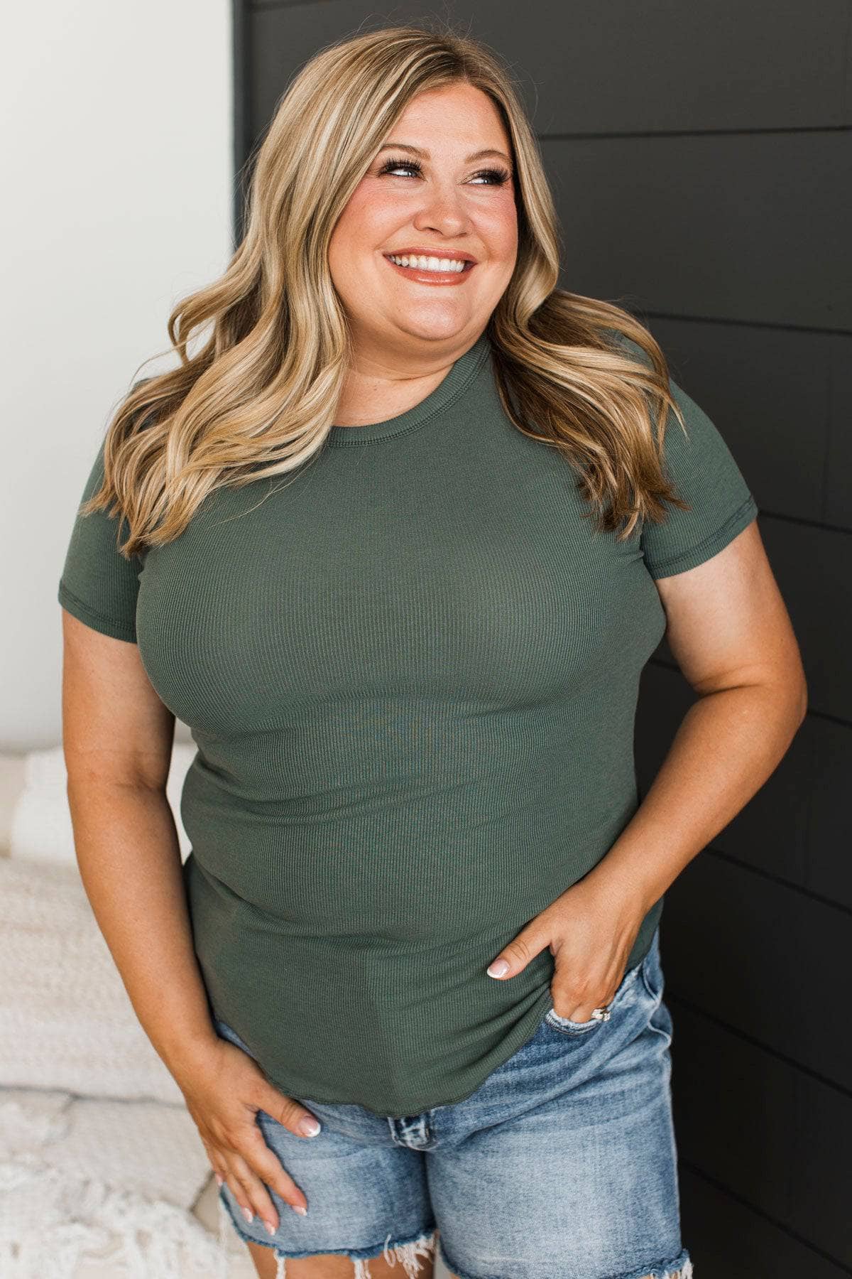 Confident Attitude Ribbed Top- Dark Green