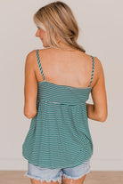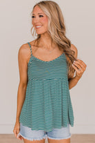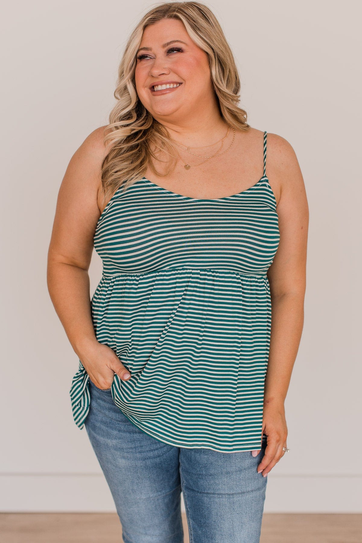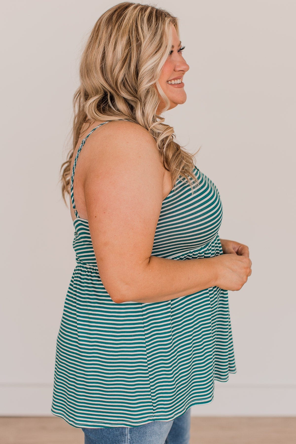 Always Be Together Striped Babydoll Tank Top- Teal & Ivory