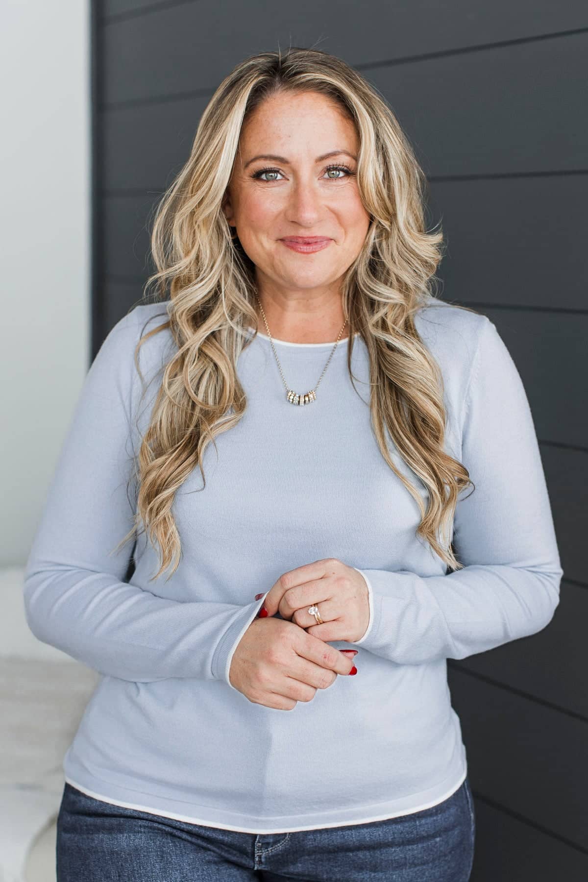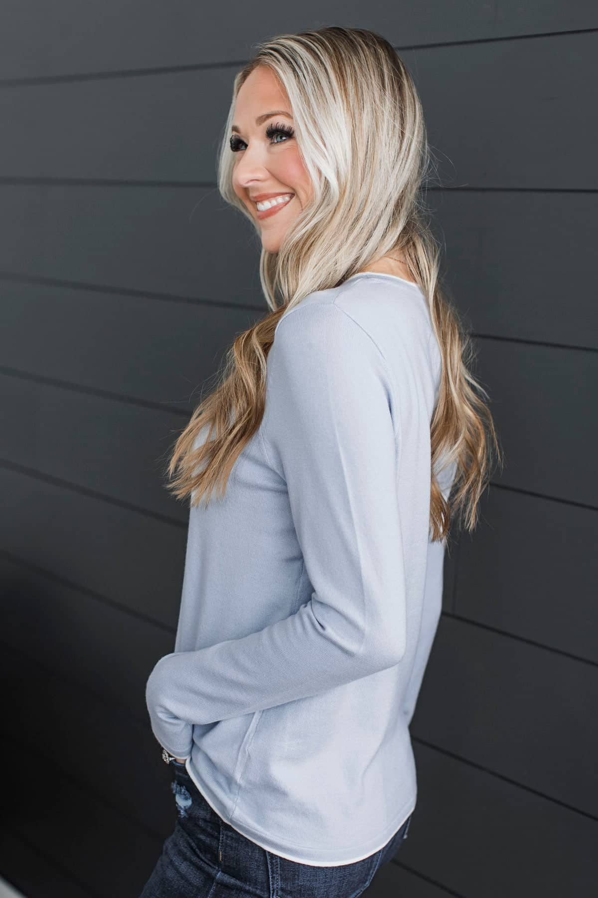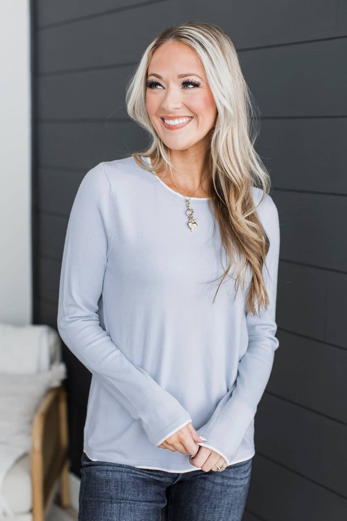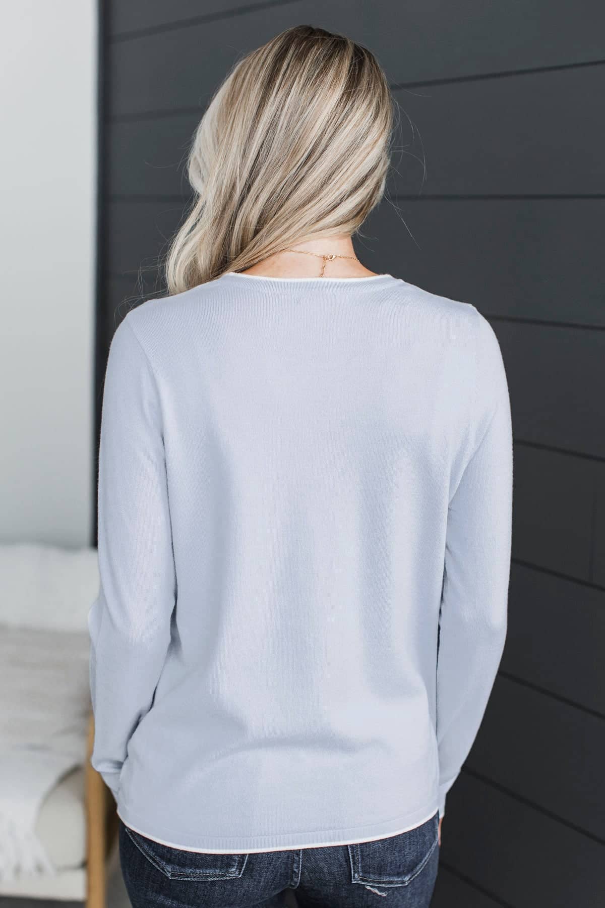 Amazing Confidence Contrast Knit Sweater- Powder Blue