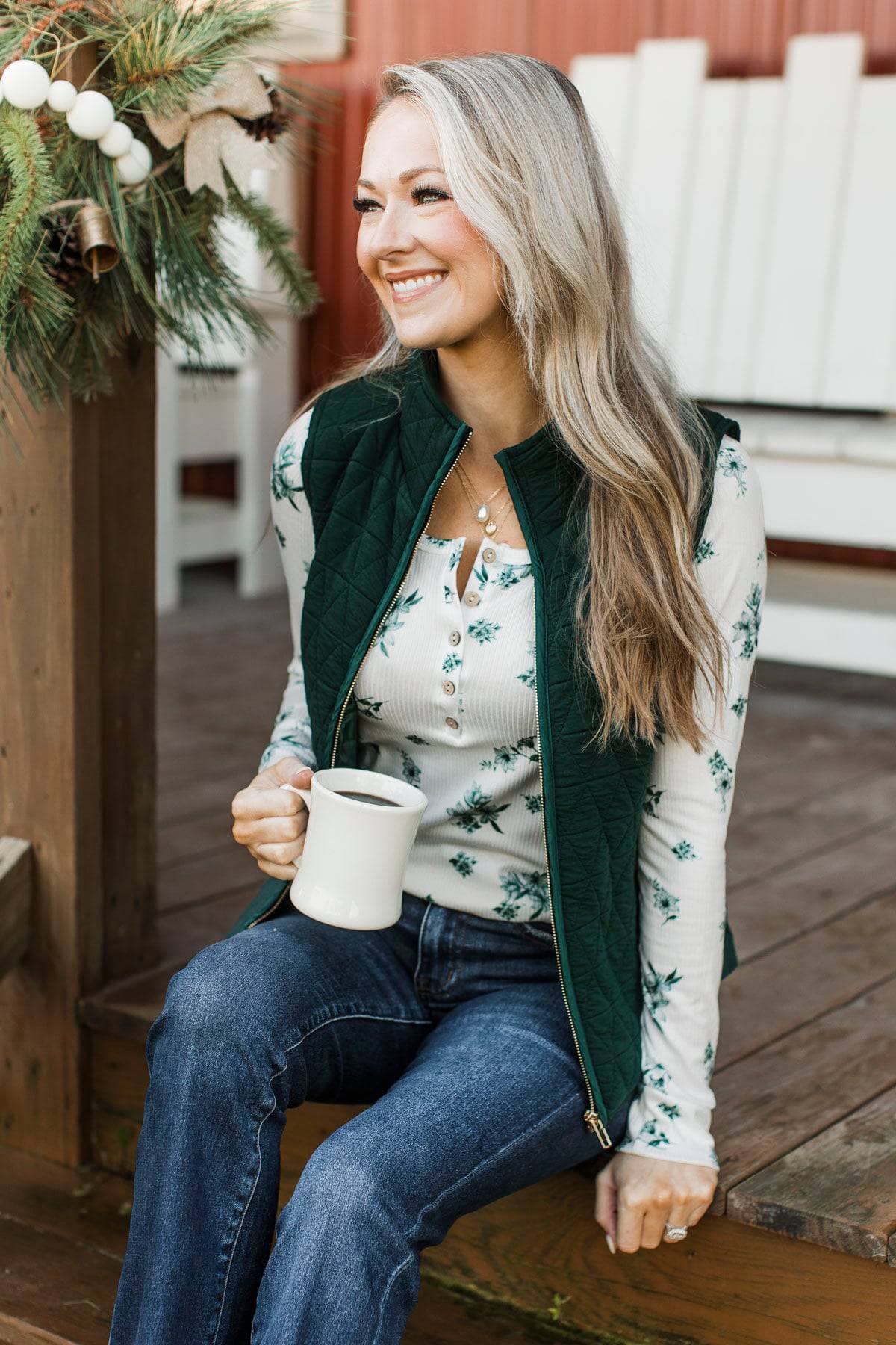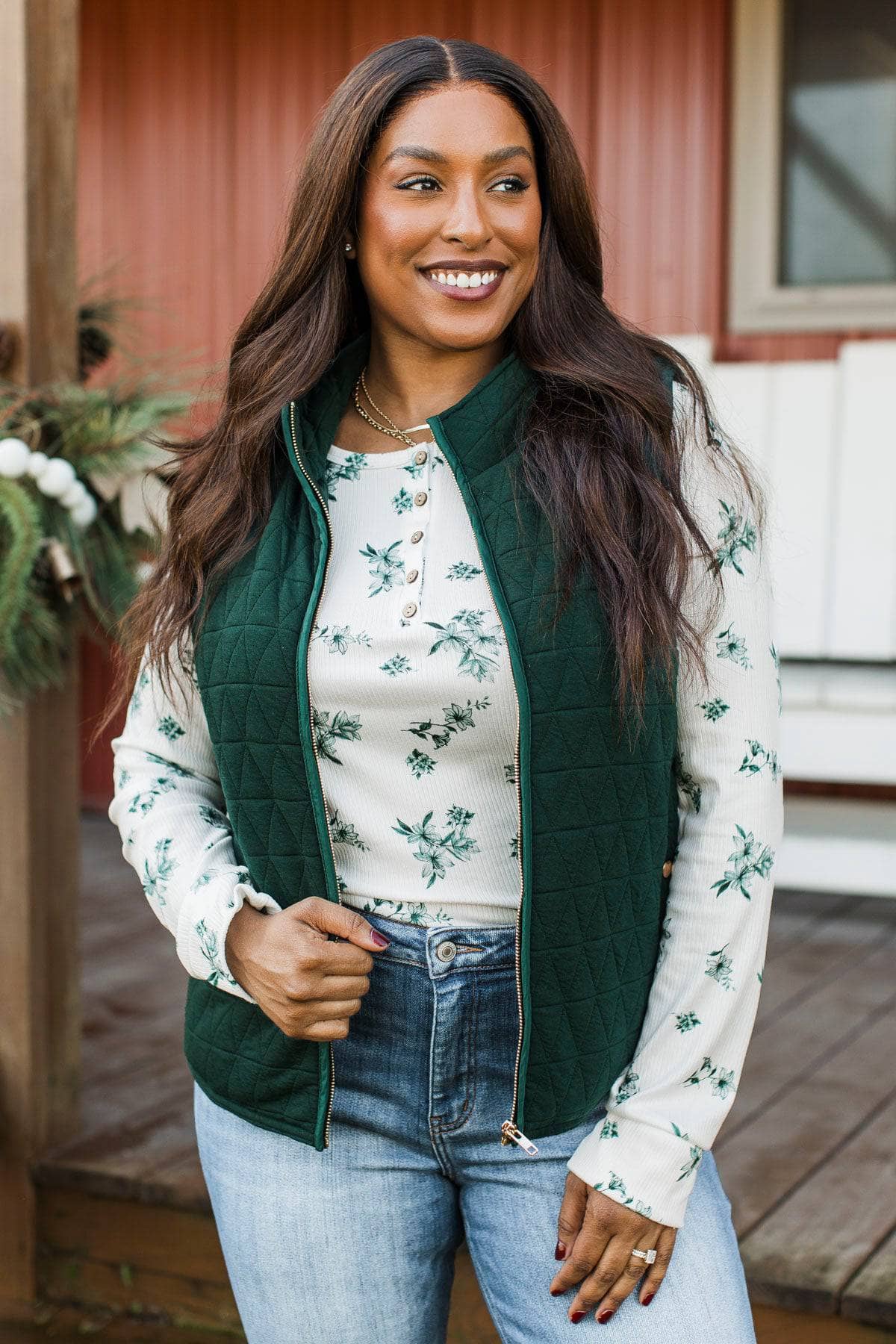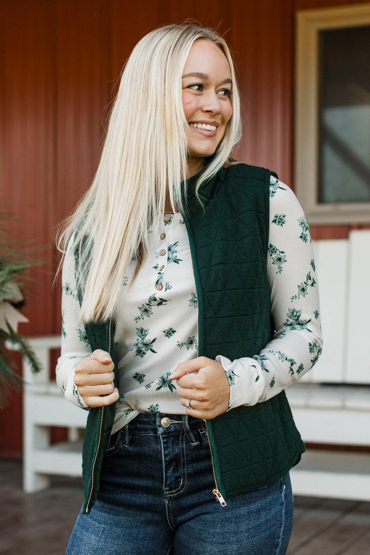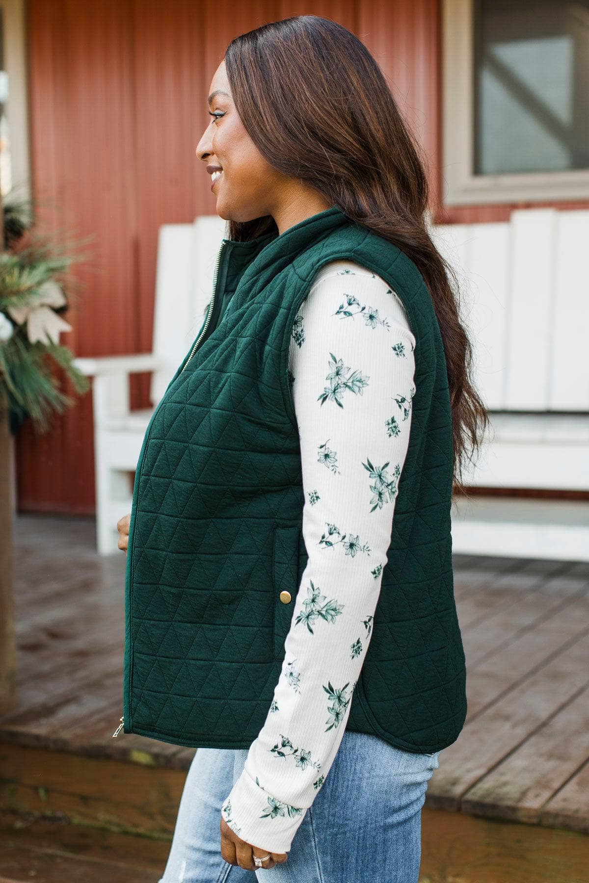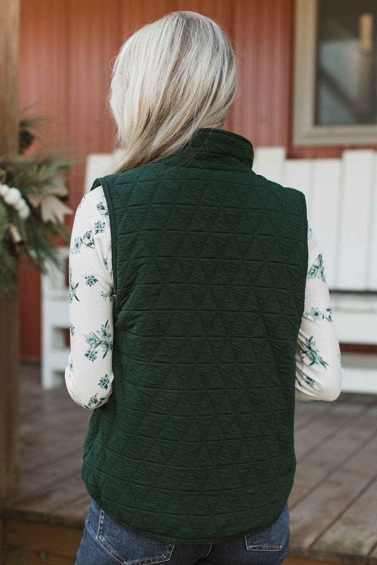Appreciate Everything Quilted Puffer Vest- Forest Green
