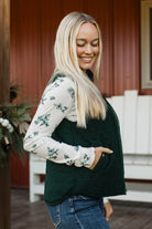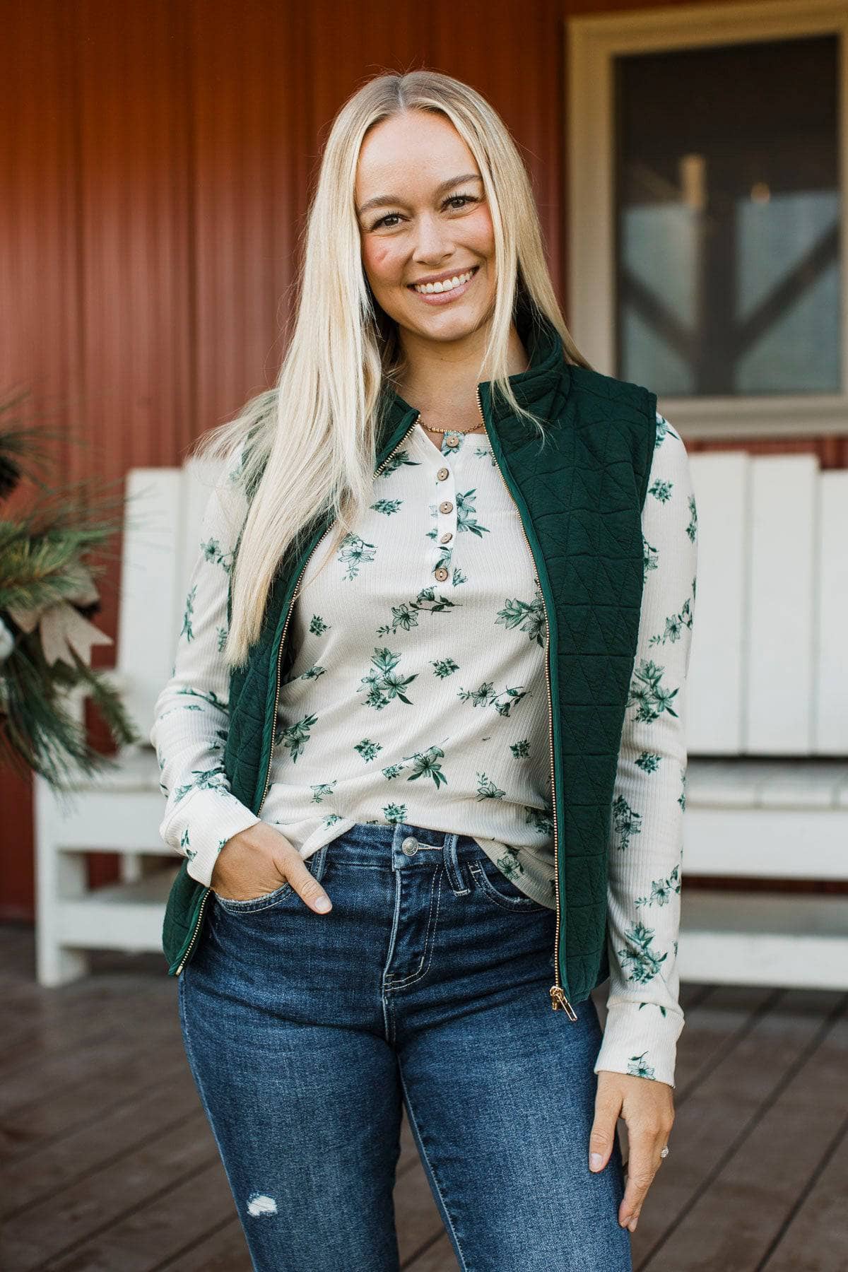 Call Me Lovely Floral Henley Top- White & Wintergreen