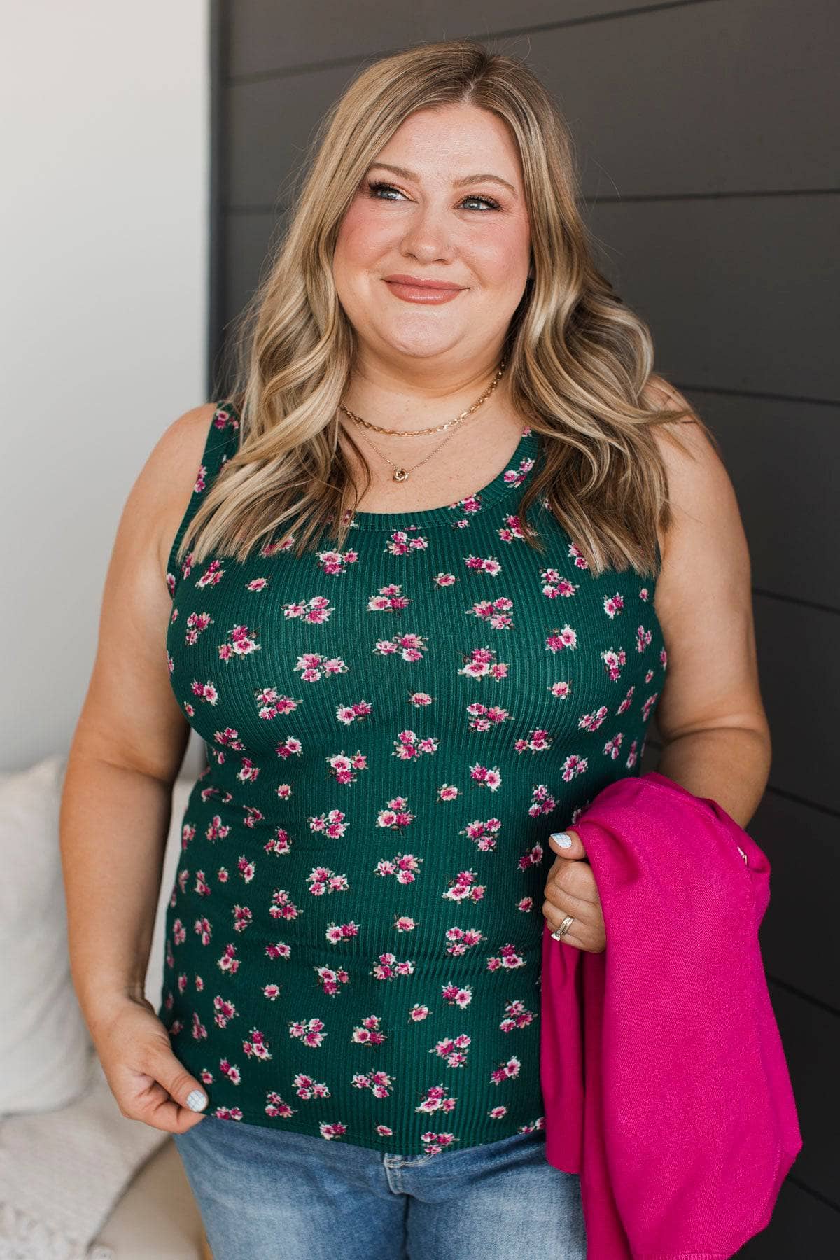 Through Spring Floral Tank Top- Hunter Green