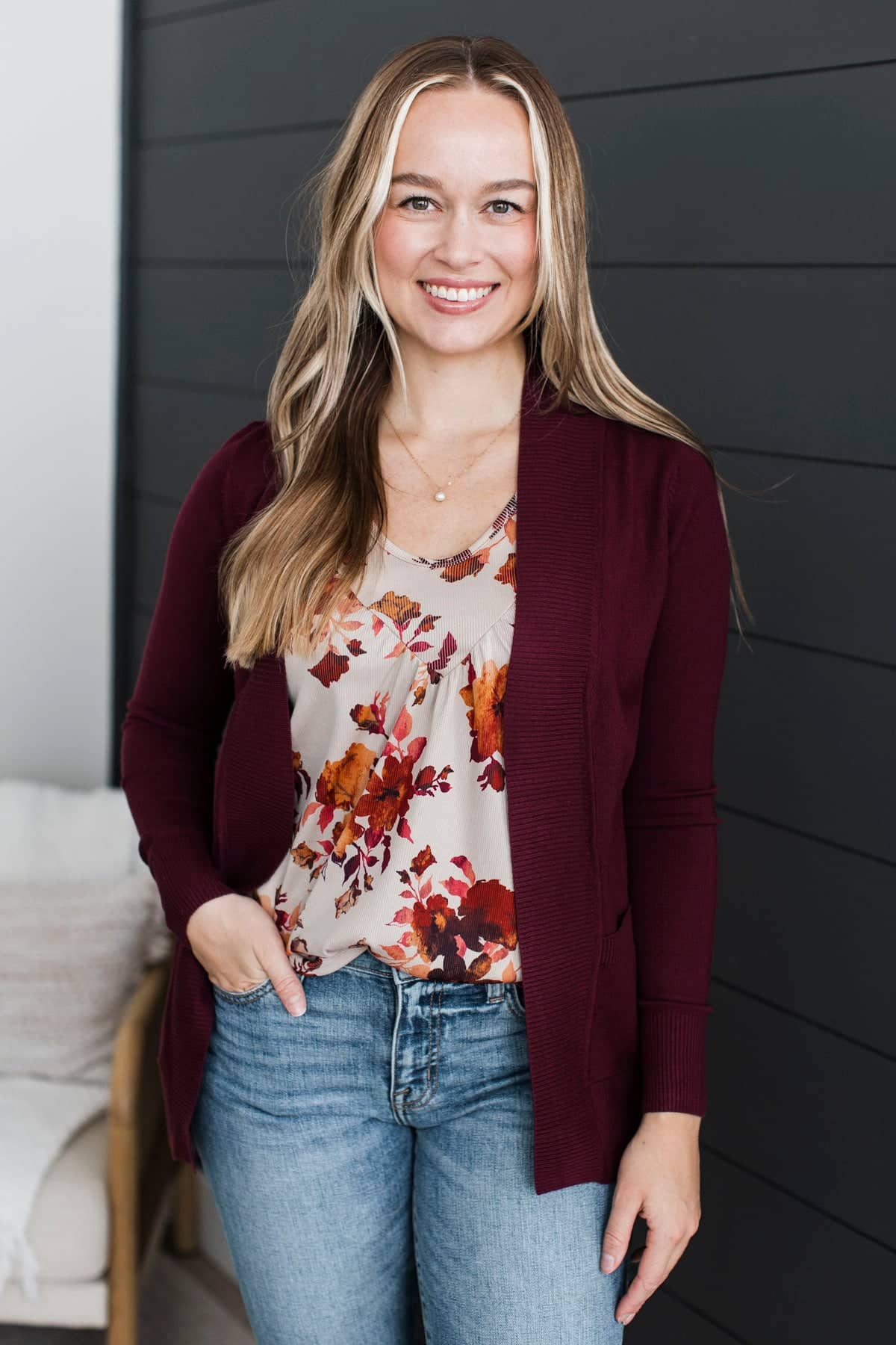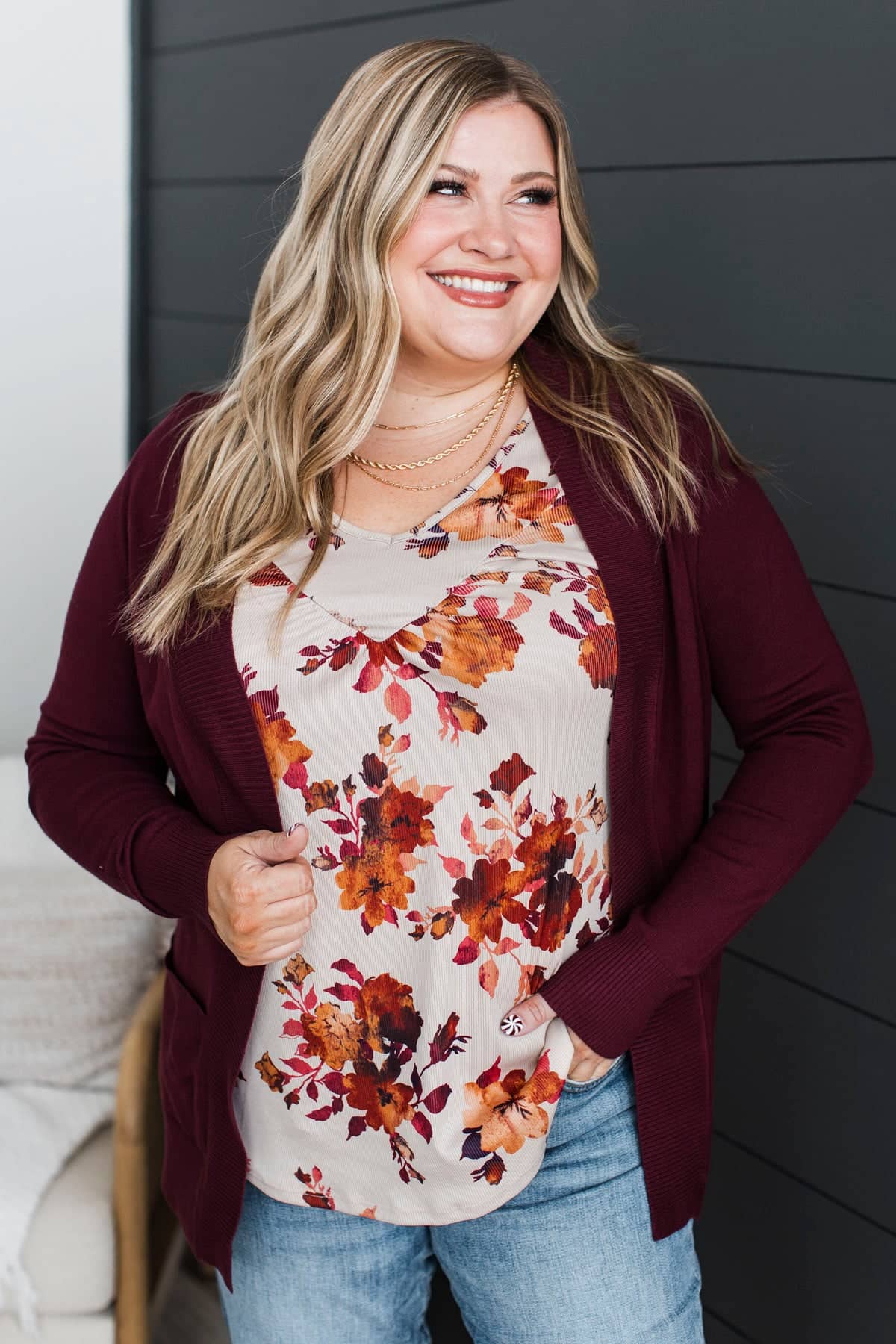 As Easy As Can Be Cardigan- Burgundy