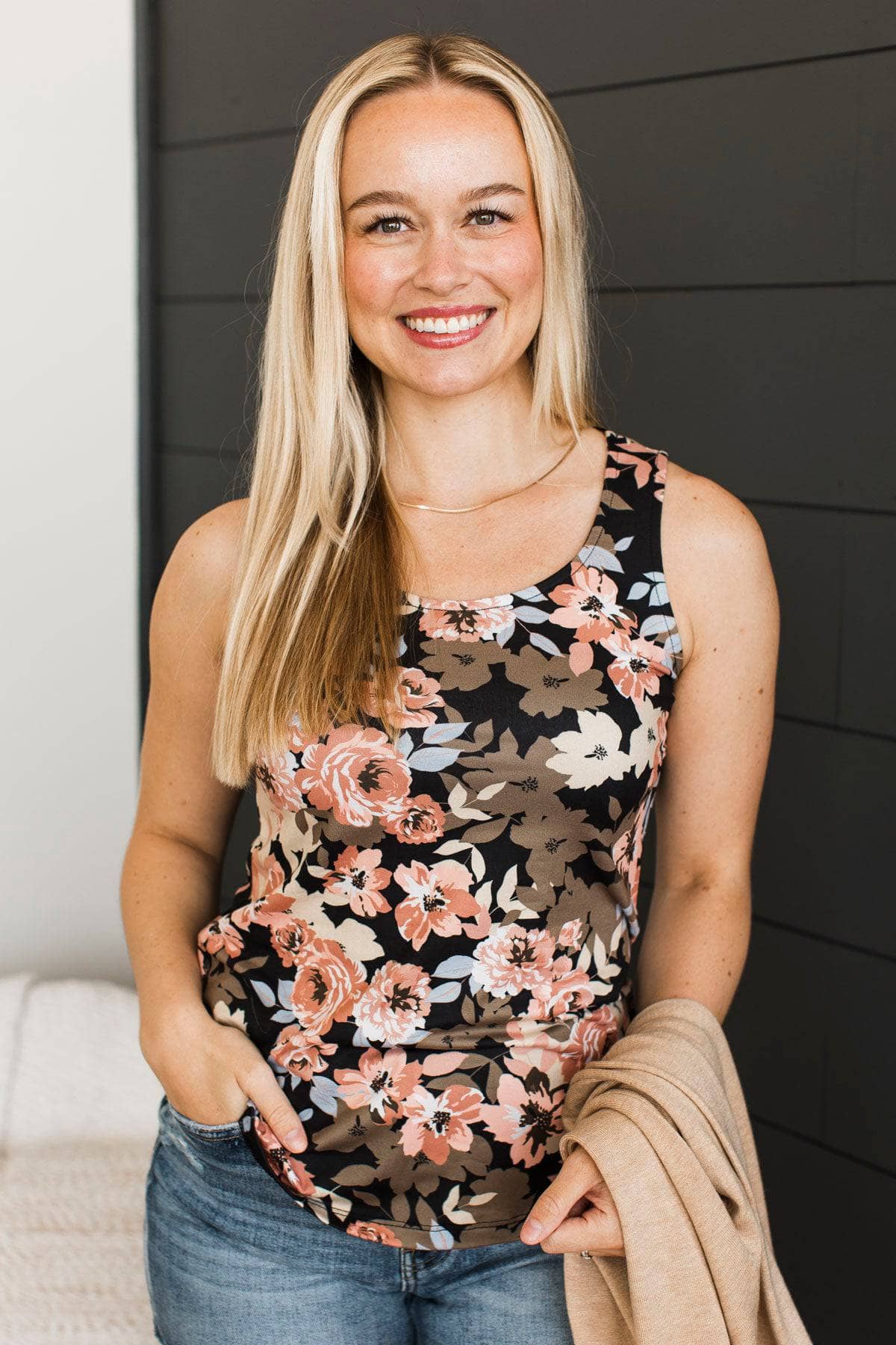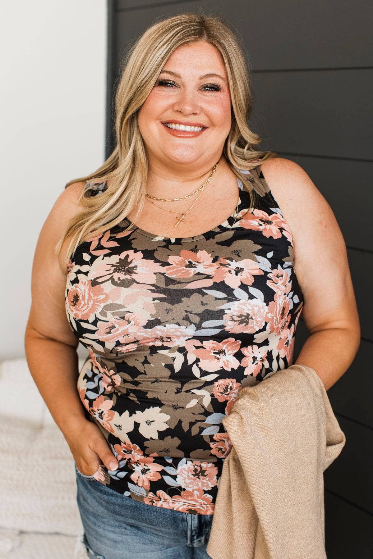Coming Together Floral Tank Top- Black & Dusty Peach