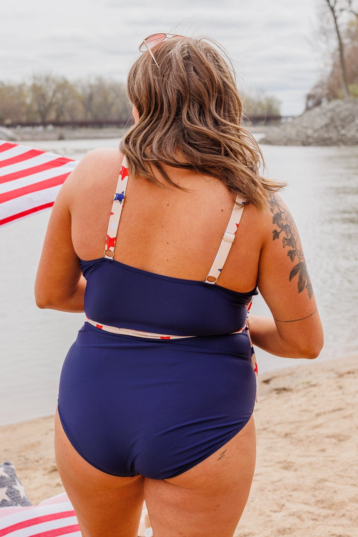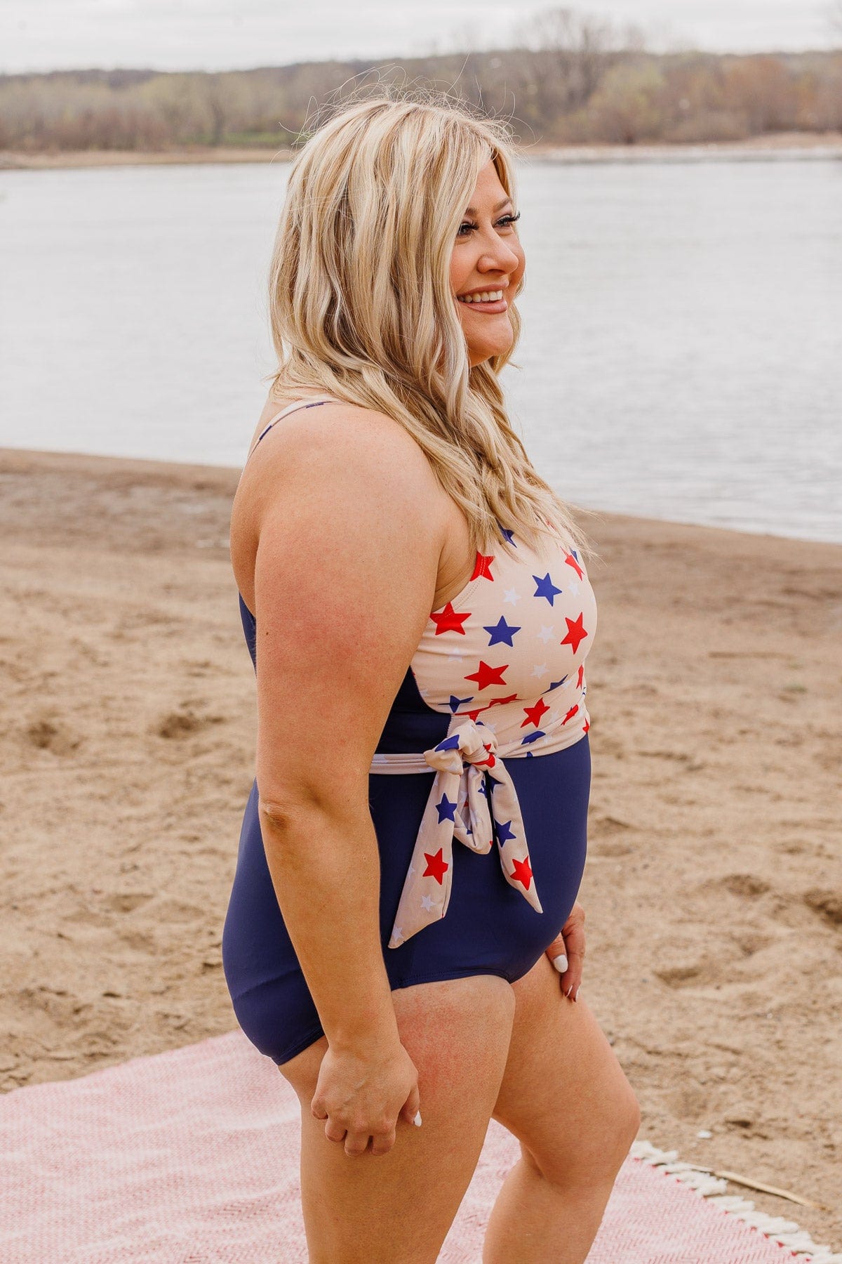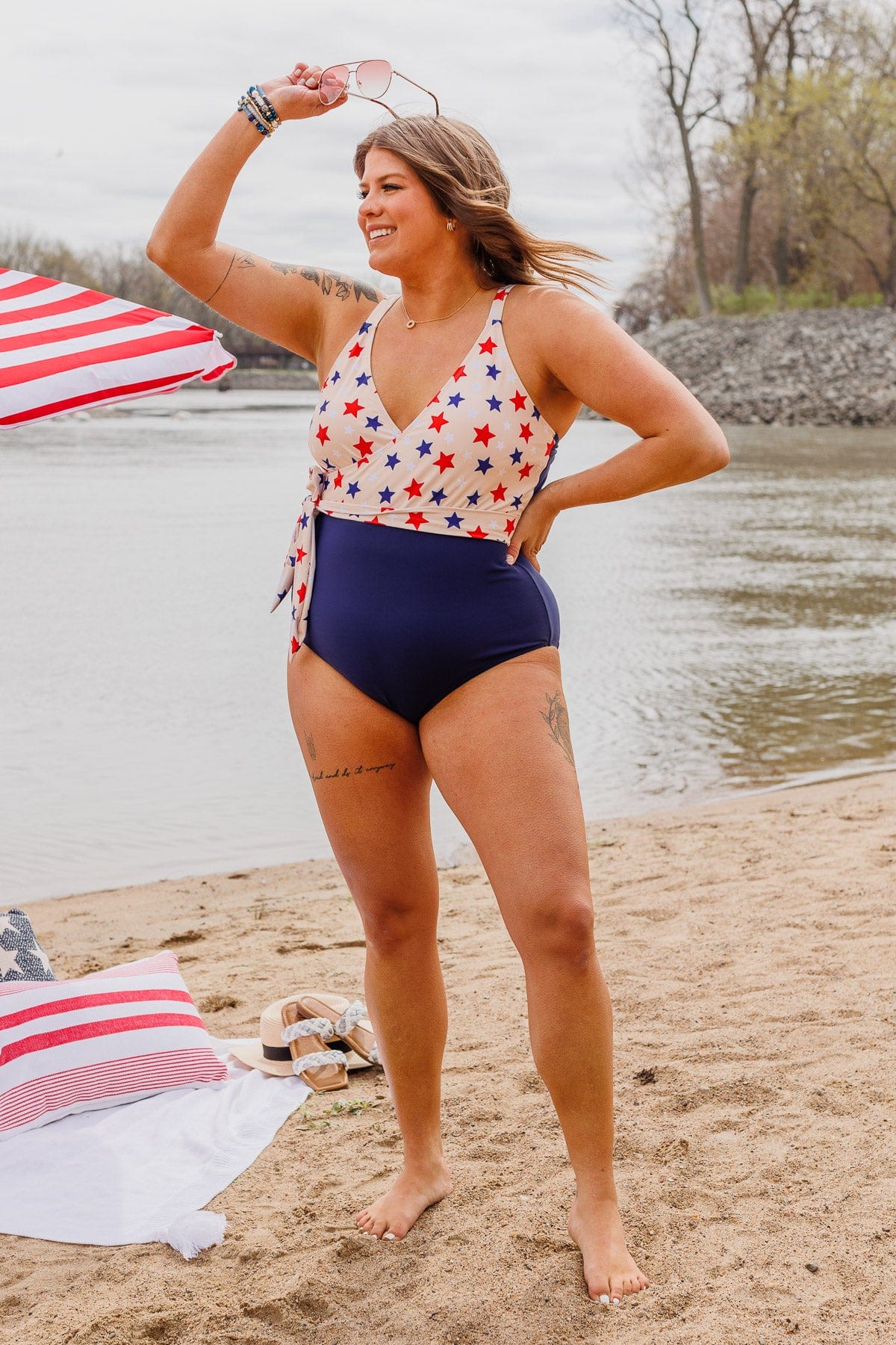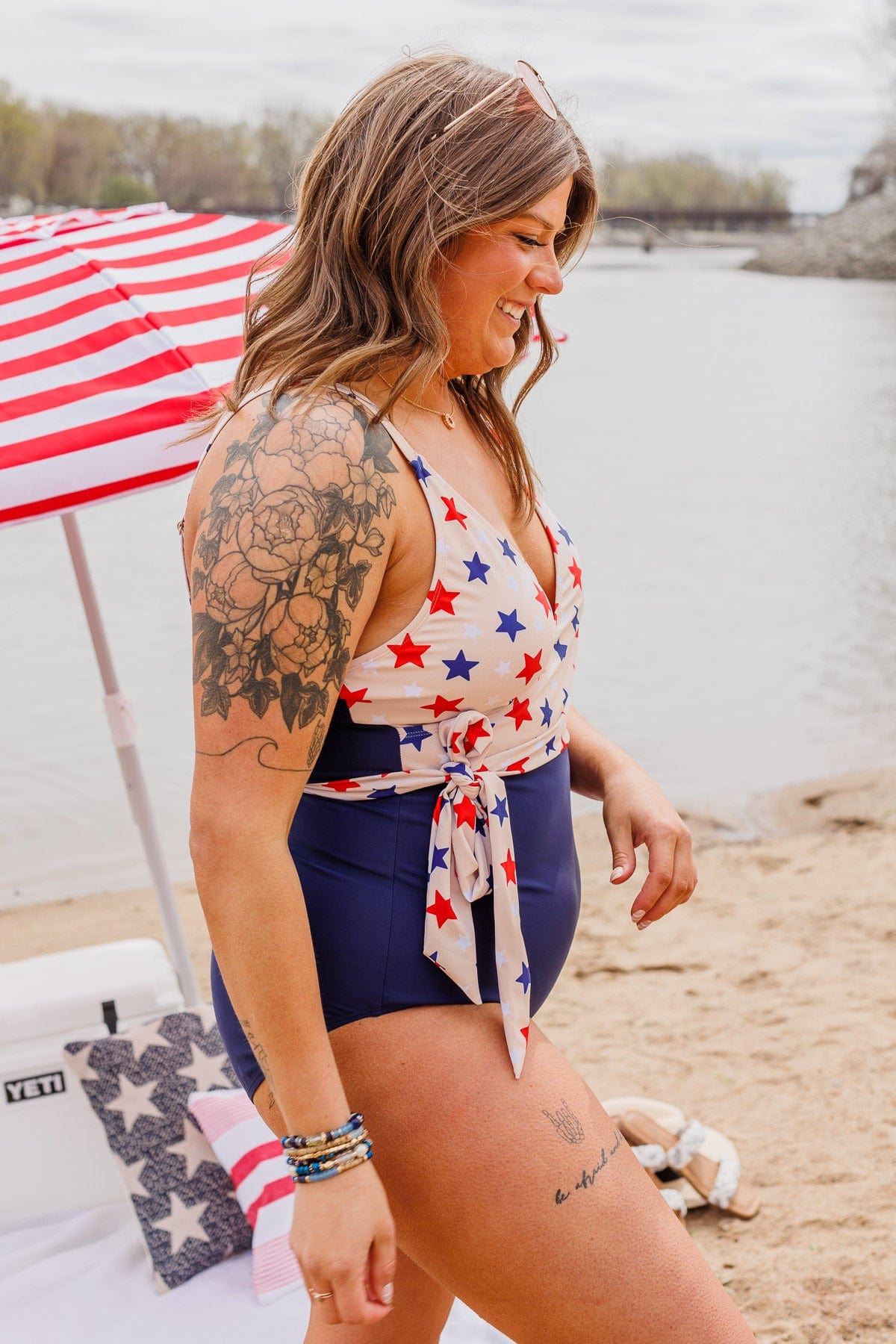 Relax and rejoice in the Summer sun with this beautiful one-piece swimsuit! You'll be catching glances anywhere you go with details like the wrap front with a tie and the adjustable straps! Wear this piece with one of our cover ups for a look that will have you looking like the ultimate beach babe!