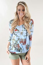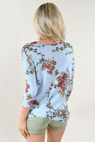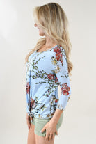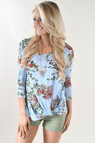 Blue Floral 3/4 Sleeve Top.
