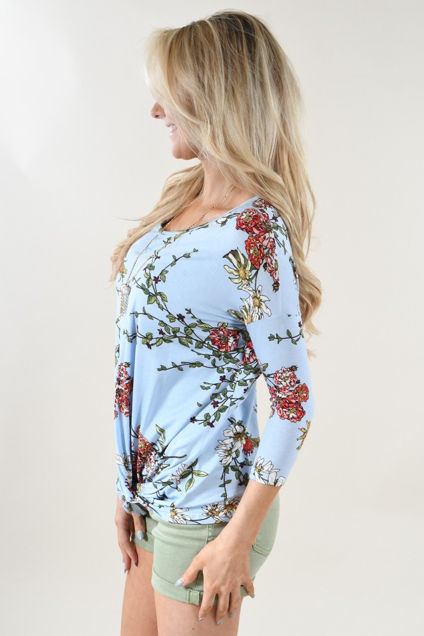 Blue Floral Knot Top