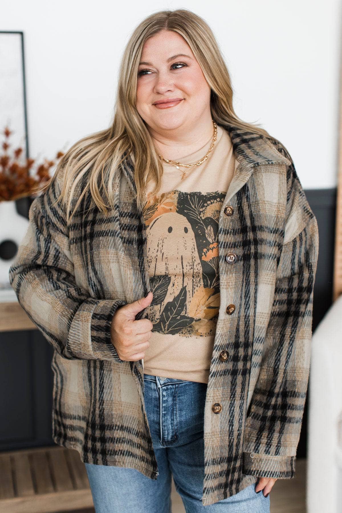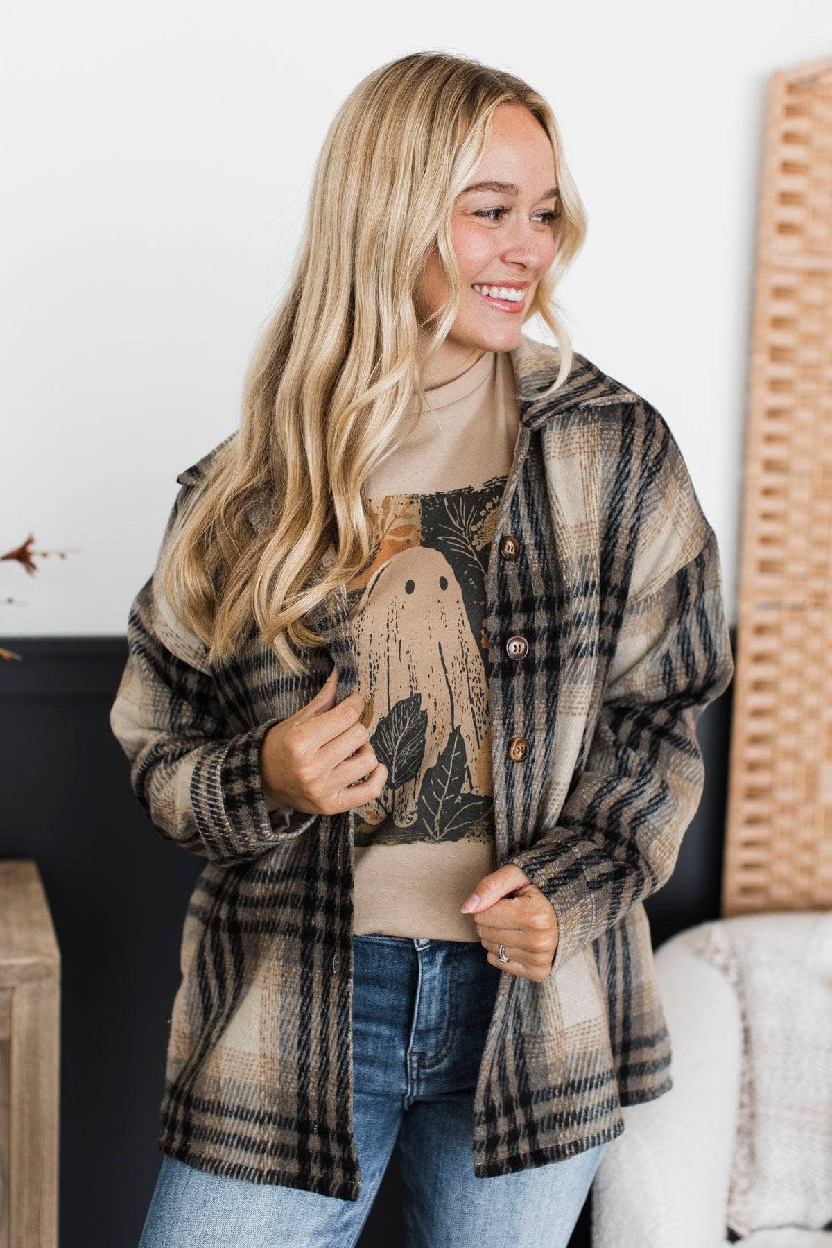 Campfire Nights Plaid Jacket- Beige & Black