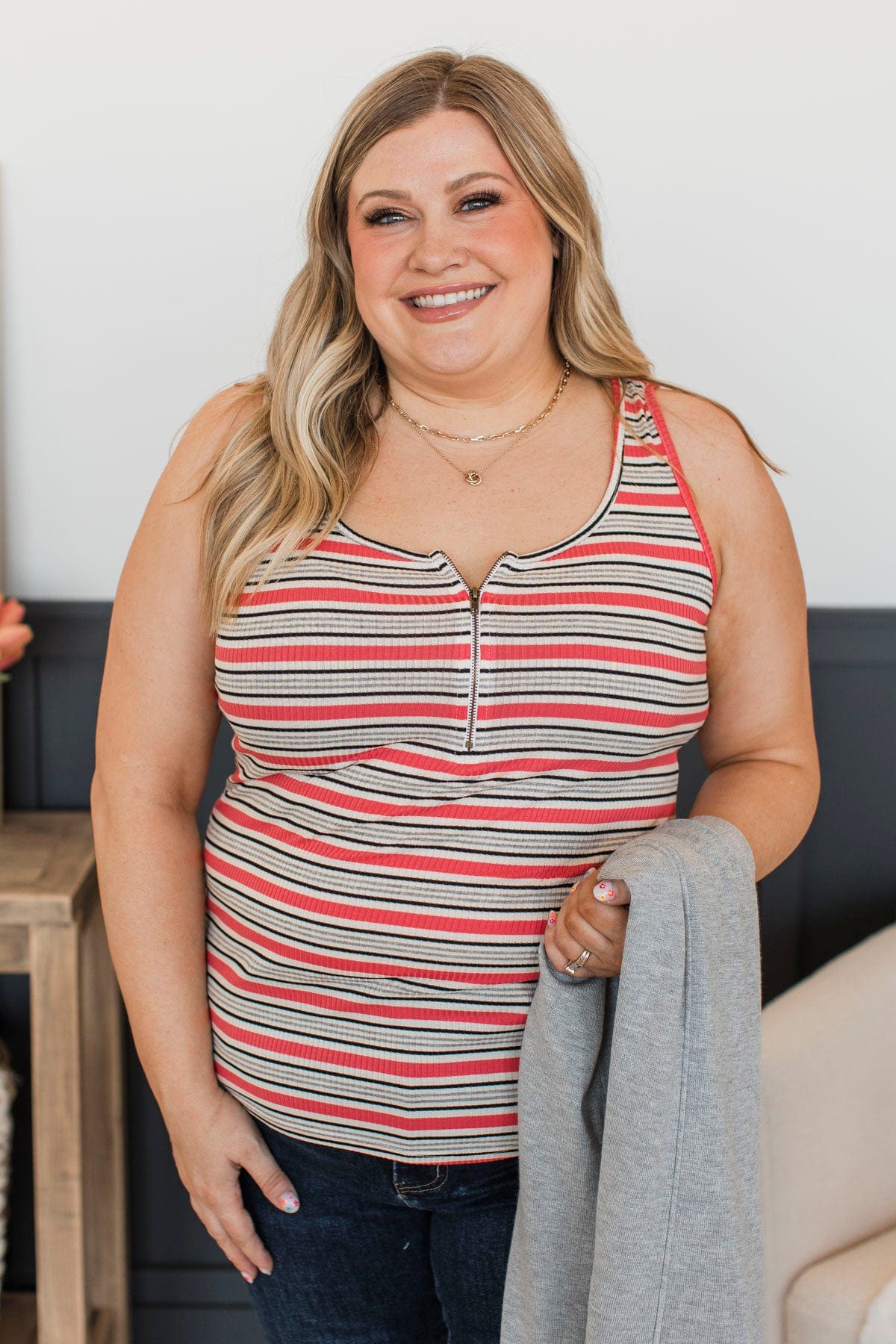 Keep It Easy Striped Tank Top- Ivory & Coral