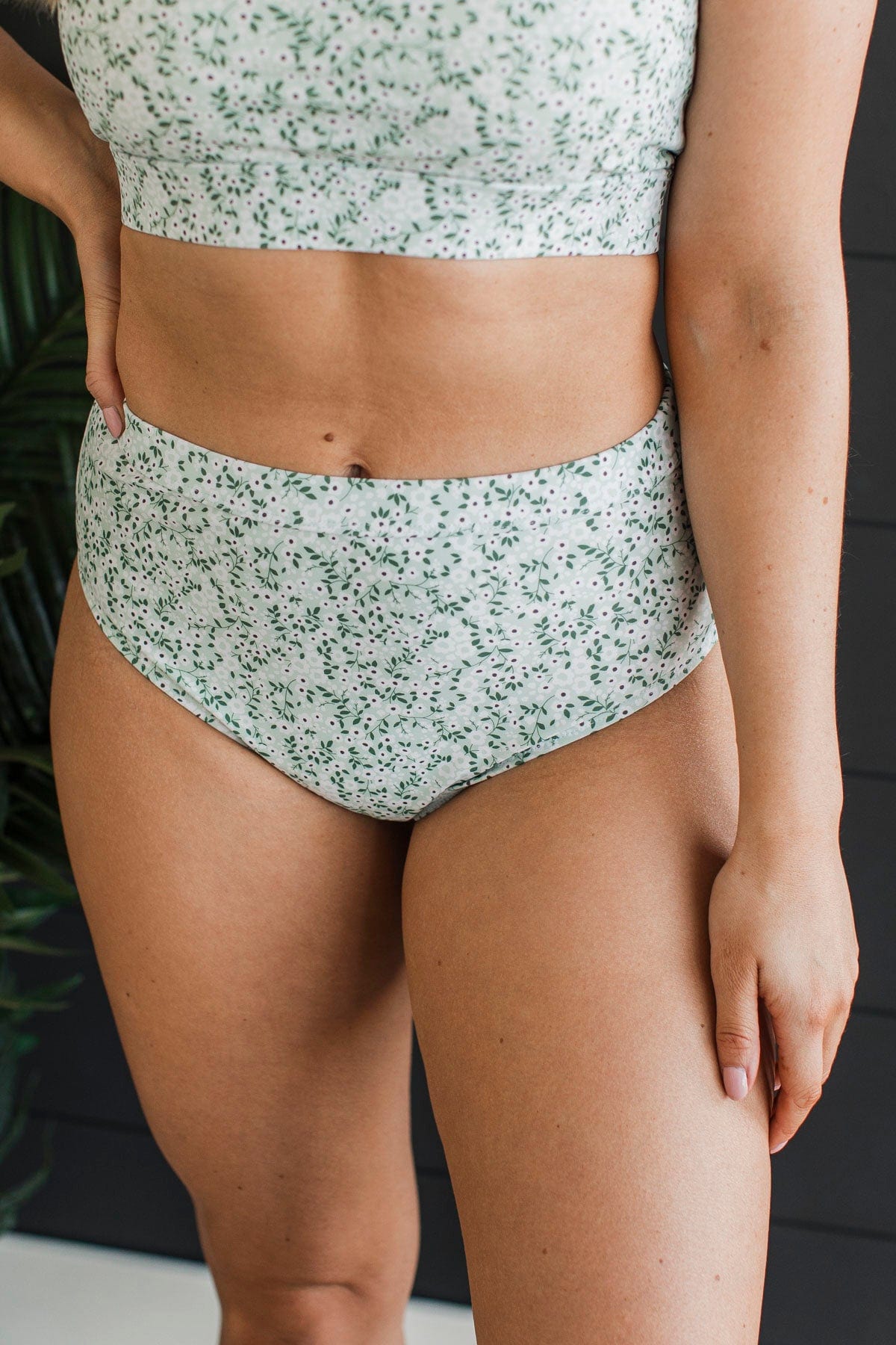 Sandy Shores High-Rise Swim Bottoms- Mint Floral